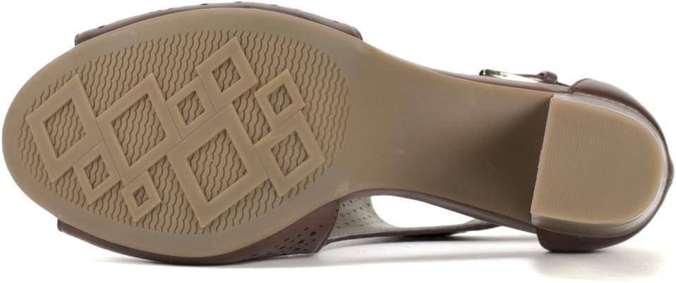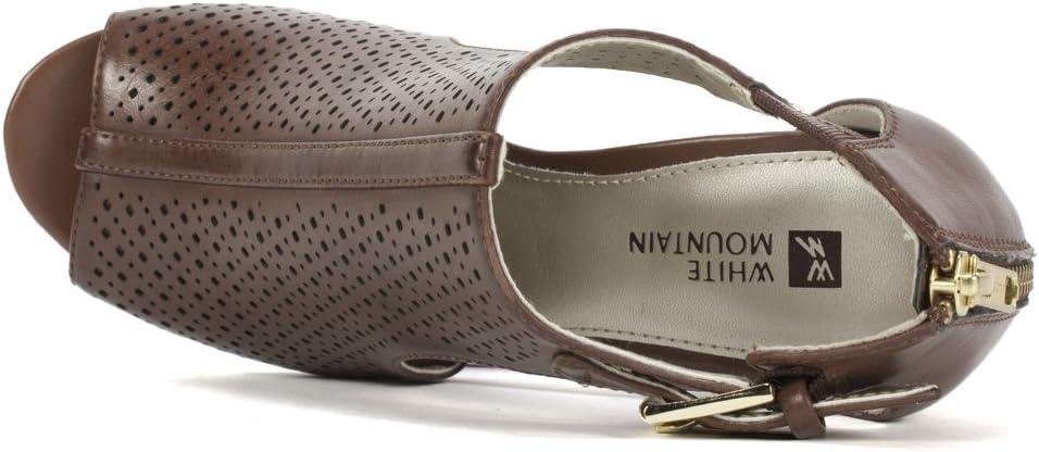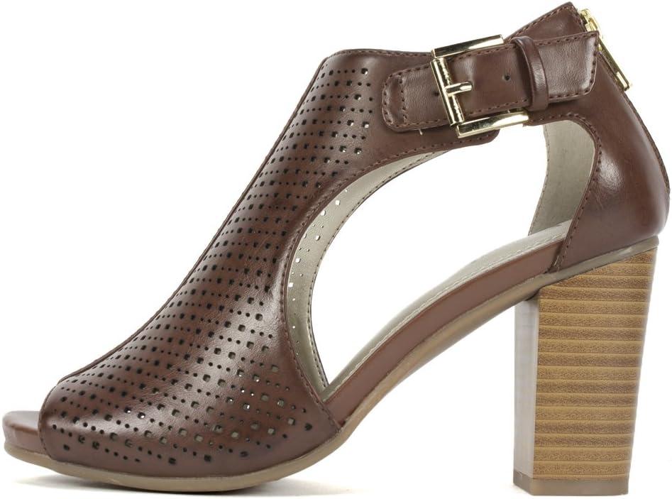 Dreamy block heel sandal has lots of foot coverage. Get that modern look with upfront chop out faux leather on a 3 inch faux wood heel. Adjustable back strap keeps you secure. Flexible forepart for comfort.