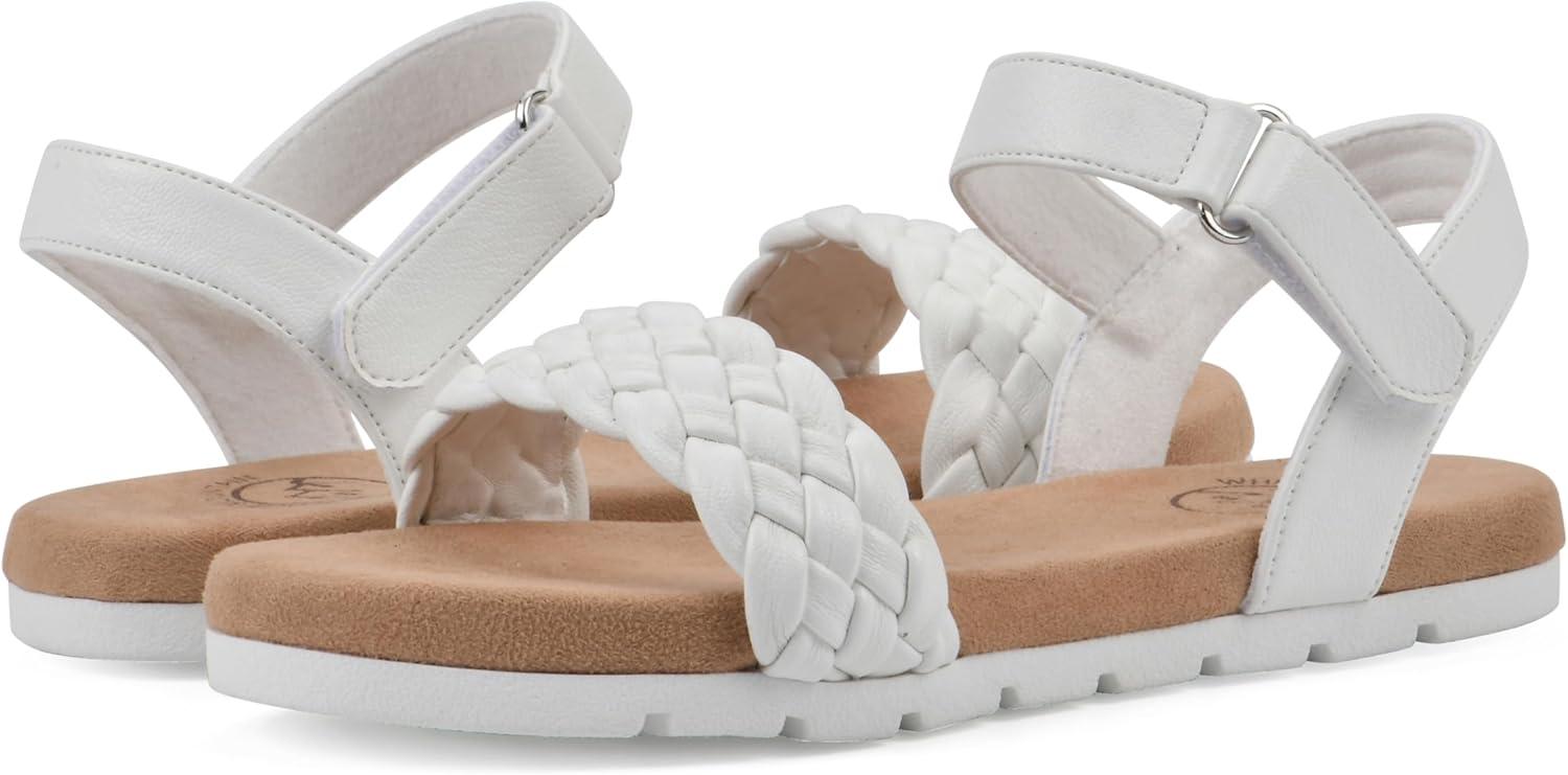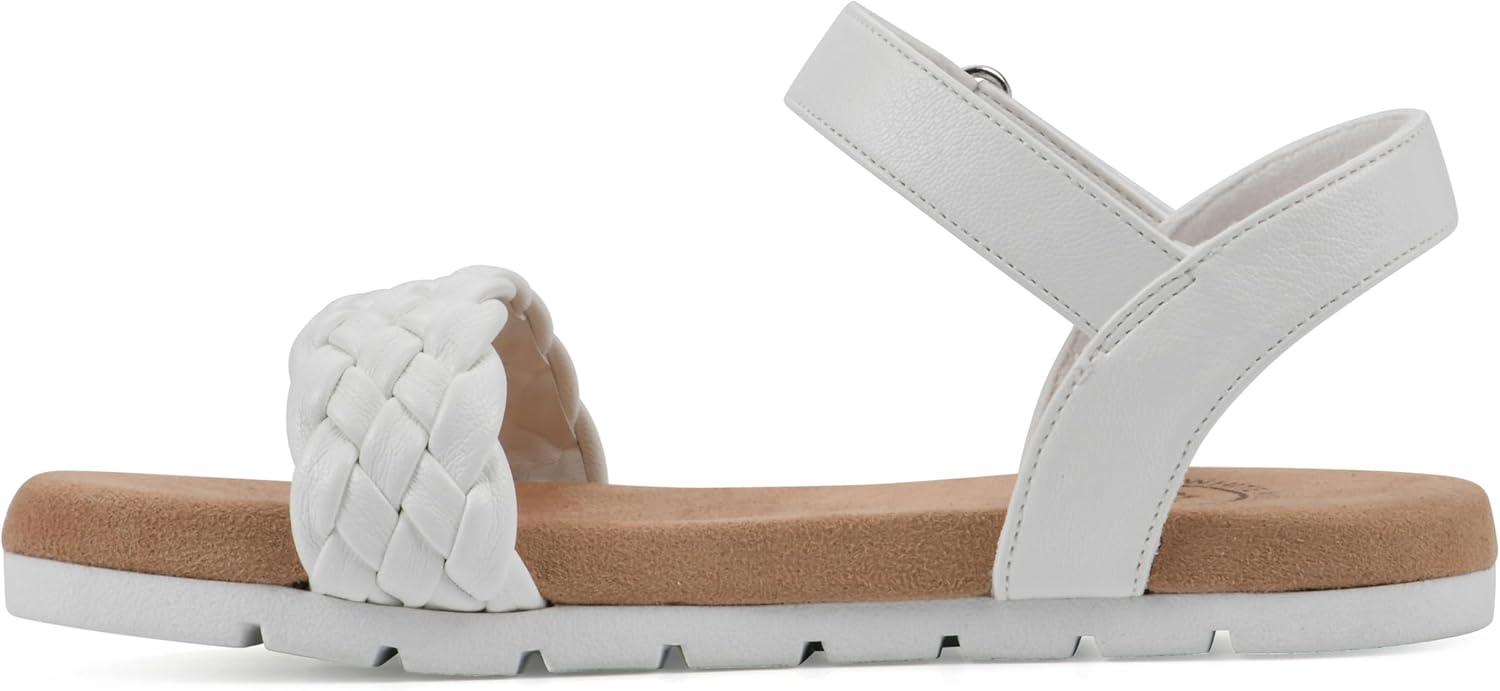 The Kids Tidbit slide sandal by White Mountain Shoes is at the intersection of sporty and girly. One braided, band-woven strap accents the front of the sandal while the adjustable ankle strap holds the foot secure to the flexible, comfortable cushioned footbed. The athletic-inspired tread finishes off this look perfectly!