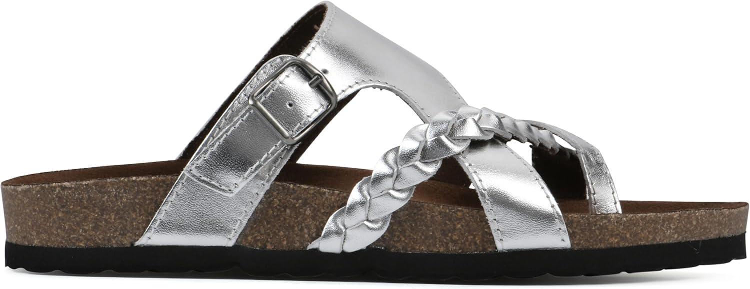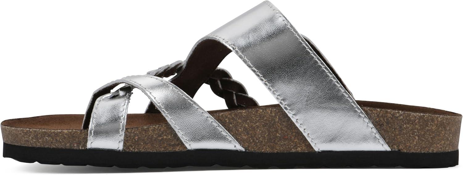 WHITE MOUNTAIN Handpick Flat Sandal(Silver/Leather)