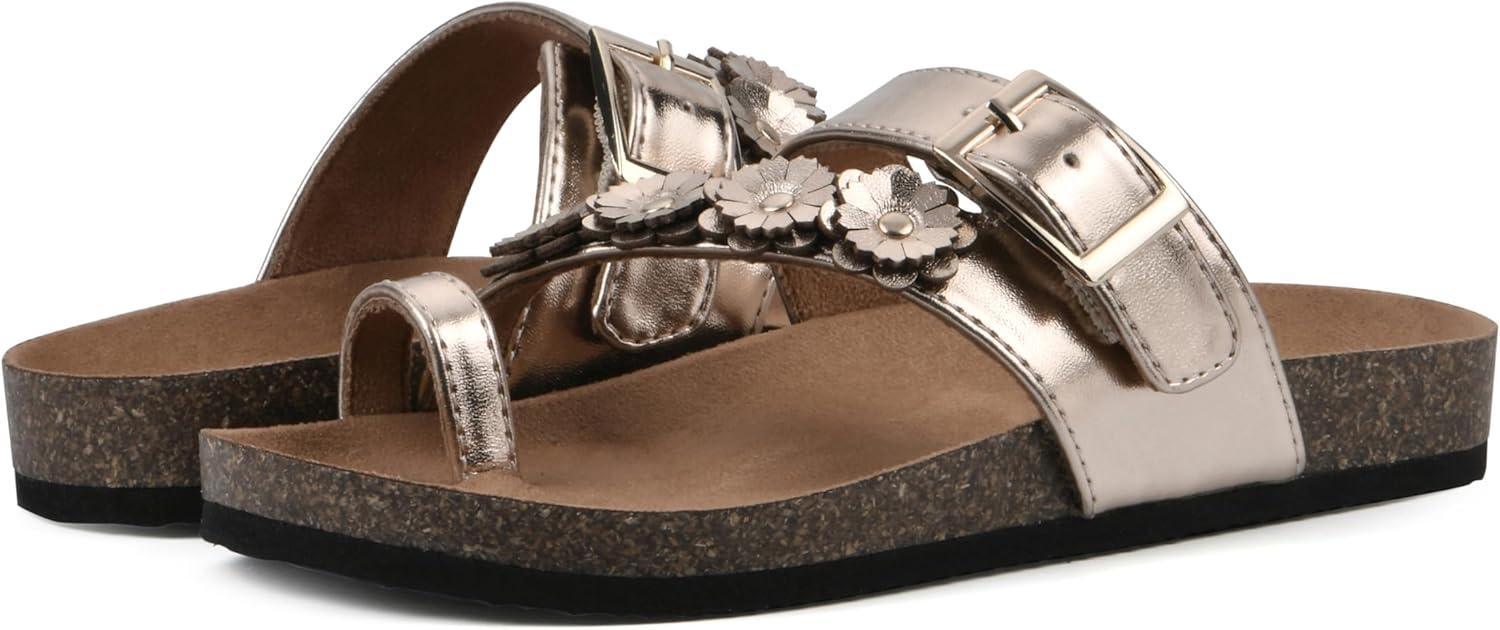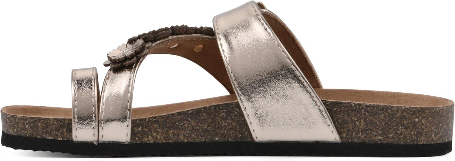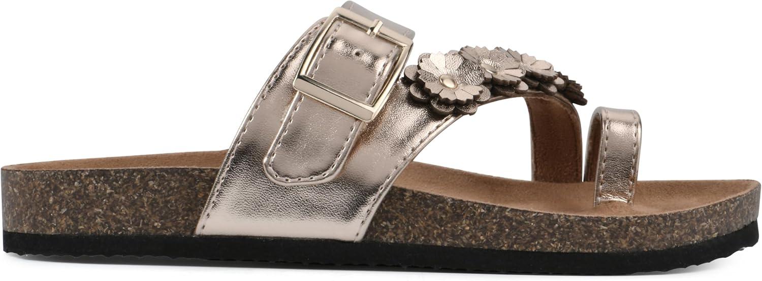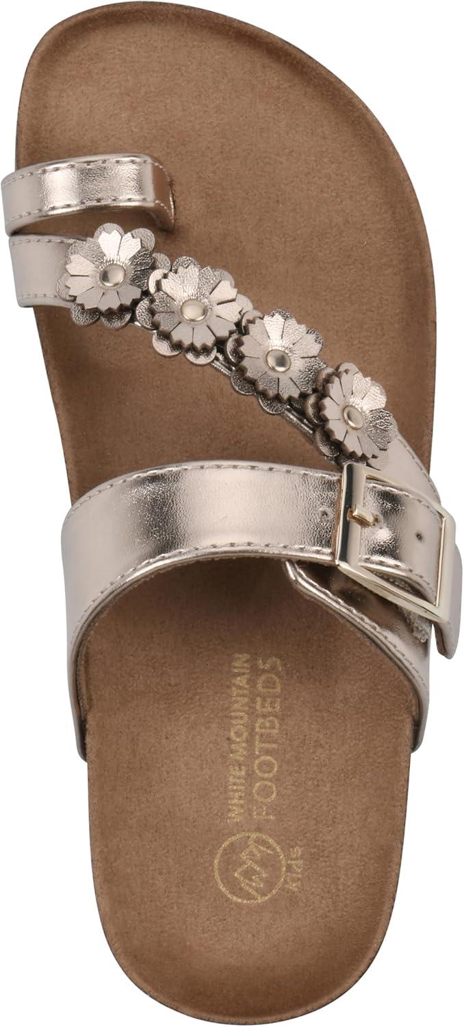 The Kids Graffito leather sandal by White Mountain Footbeds features a floral strap and an adjustable buckle for a custom secure fit. The contoured footbed with suedette lining provides maximum comfort so they can be worn everyday.