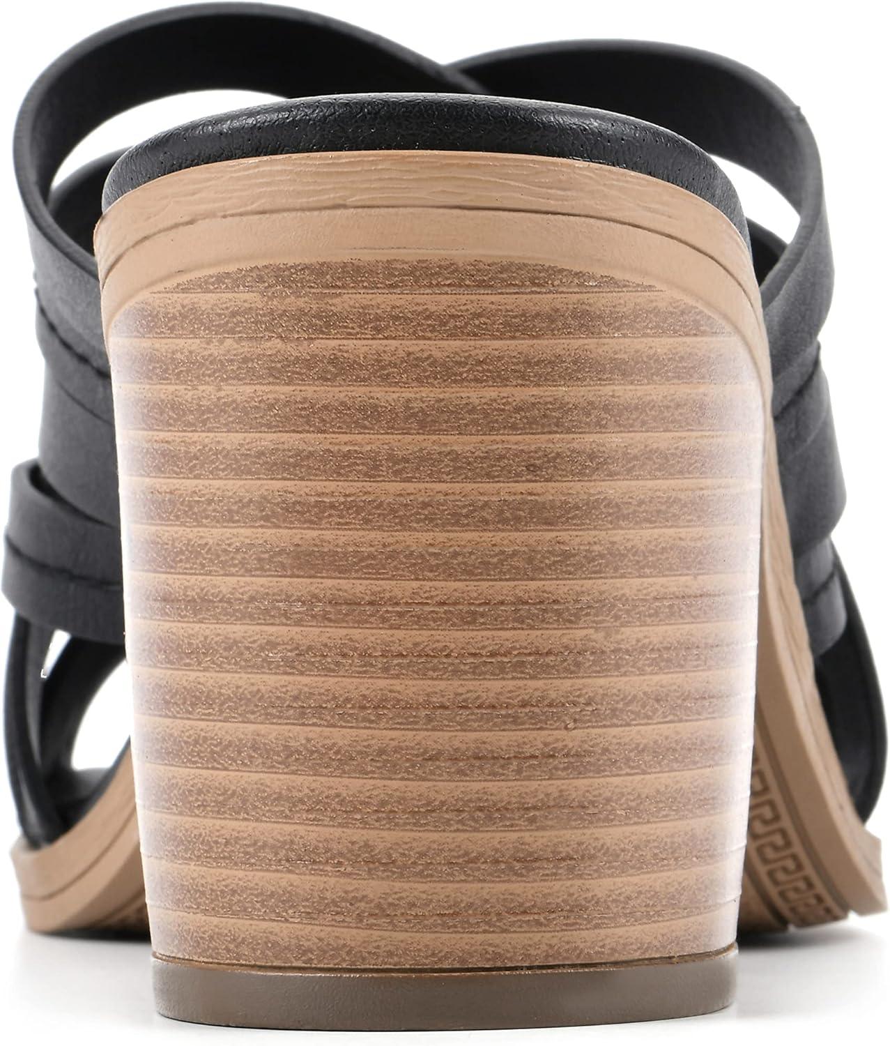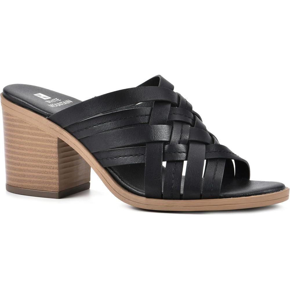 WHITE MOUNTAIN Shoes Be Happy Women’s Block Heel Sandal(Black/Burnished/Smooth)
