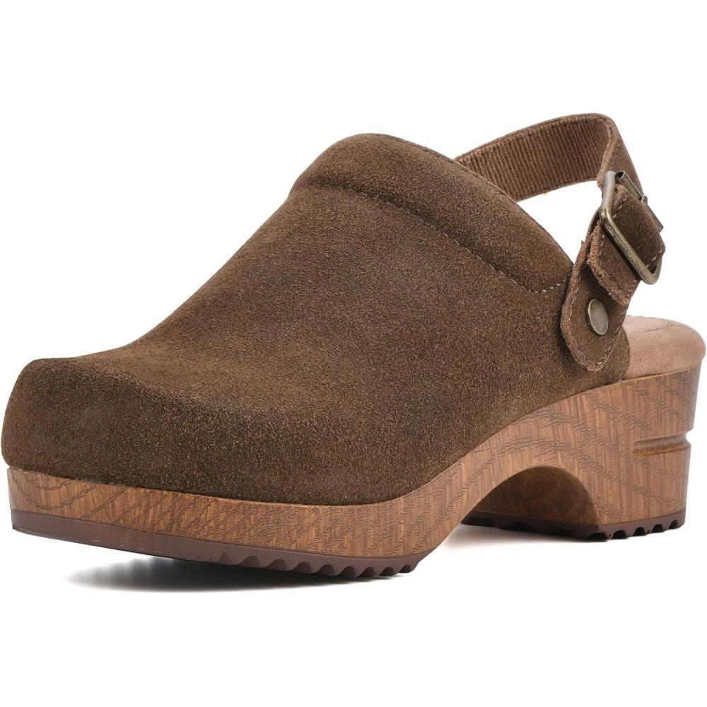 WHITE MOUNTAIN Shoes Being Leather Footbeds Clog(Brown/Suede)
