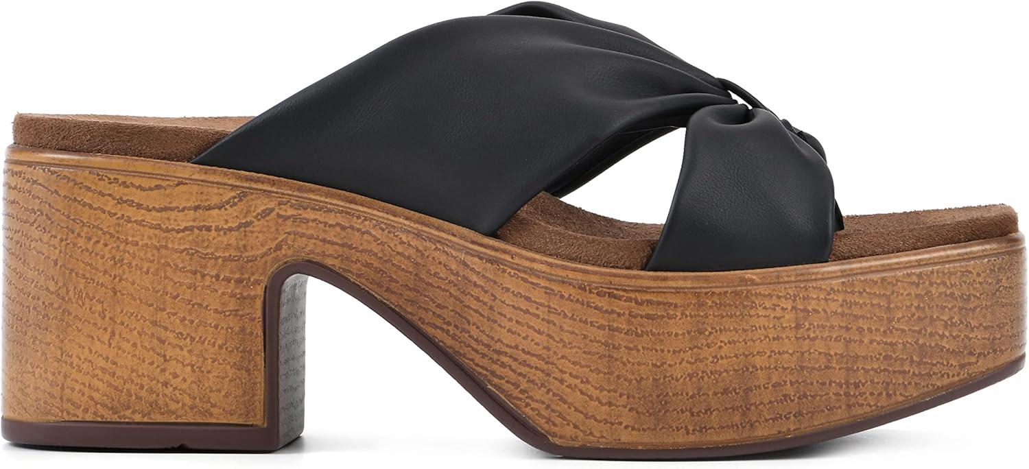 Take it back to the '70s in this clog-inspired platform sandal. The Glamming Footbeds mule by White Mountain Shoes makes a statement with glamorous knot-inspired crisscross straps and a faux-wood bottom that offers a lightweight solution to the chunky sole trend.
