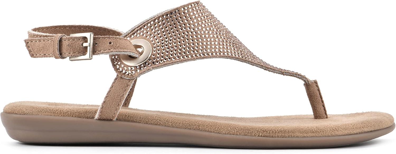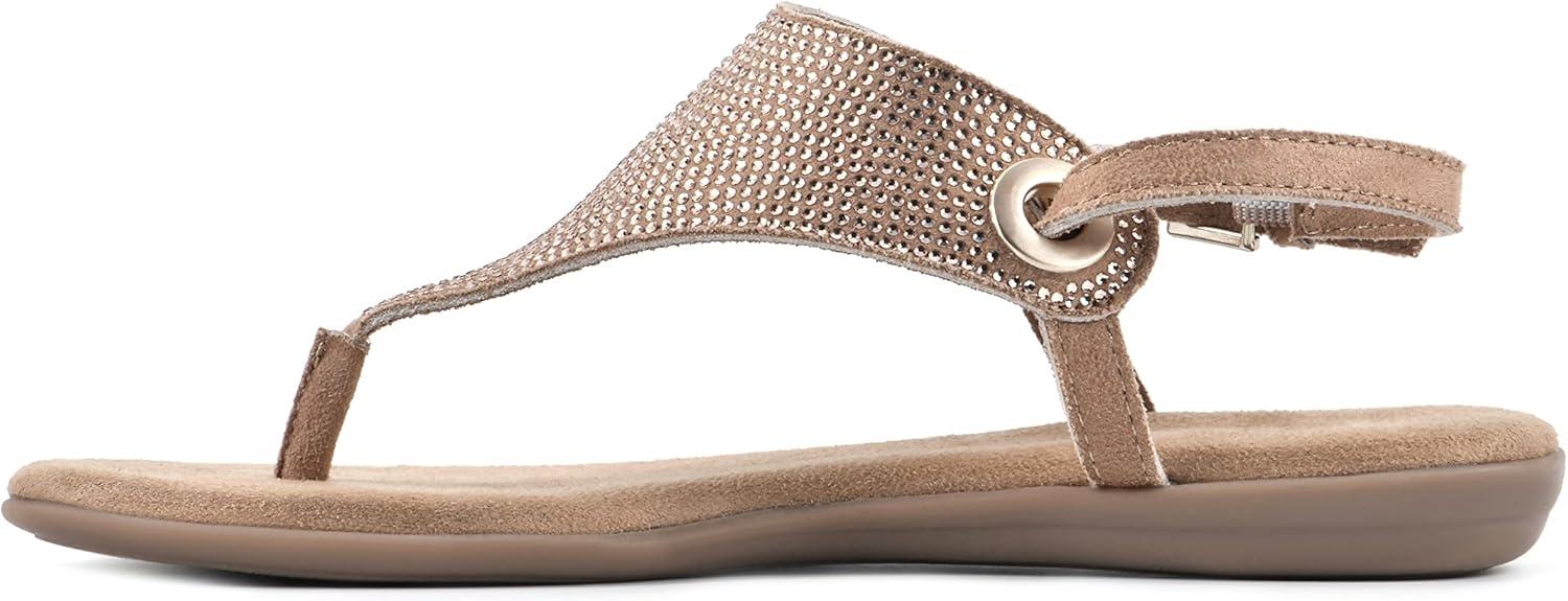 Your new warm-weather staple, the London II thong sandal by White Mountain Shoes, boosts a cushioned flexible sole and an adjustable ankle strap. Sparkling crystals elevate a simple sandal into something special.