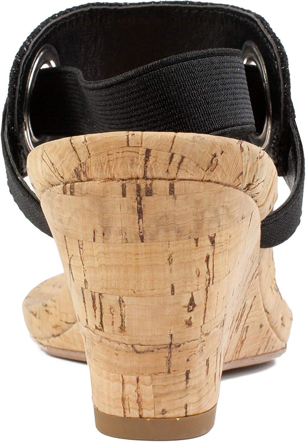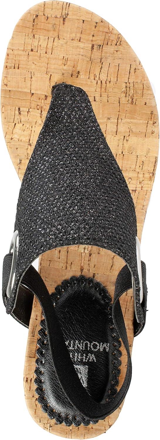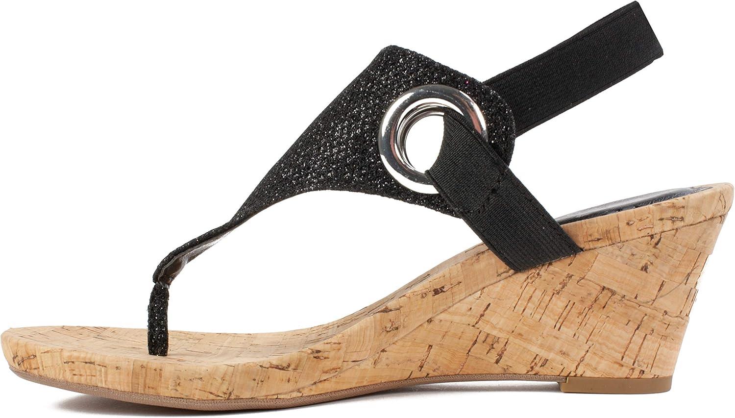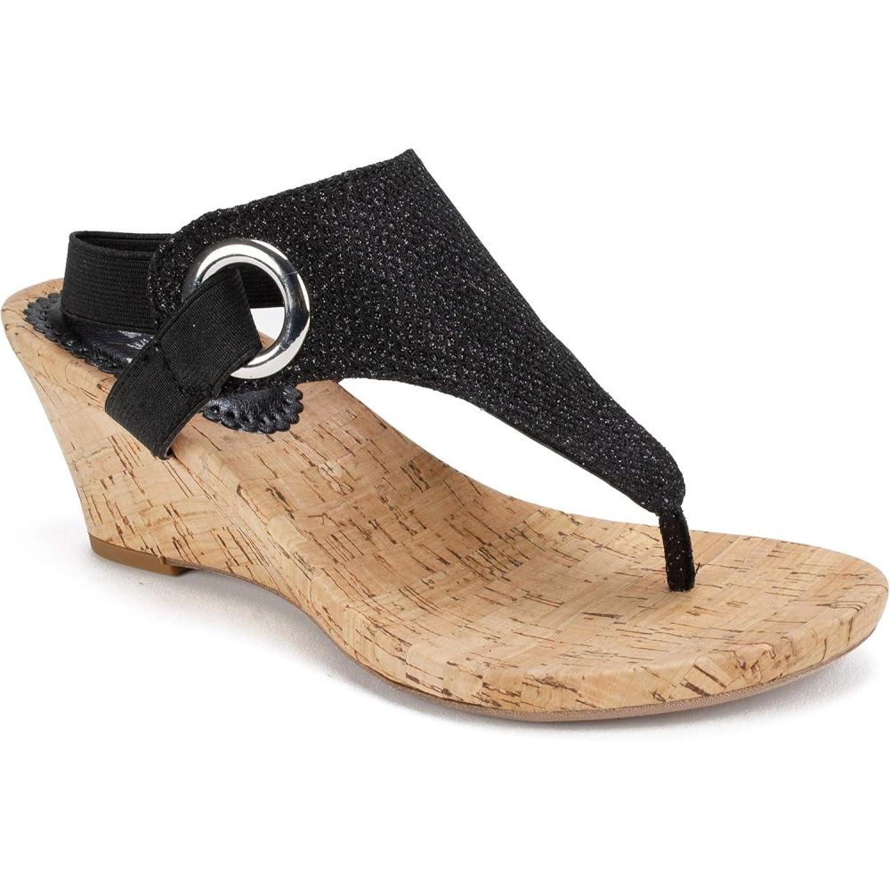WHITE MOUNTAIN Women’s Aida Cork Wedge Sandal(Black/Glitter)