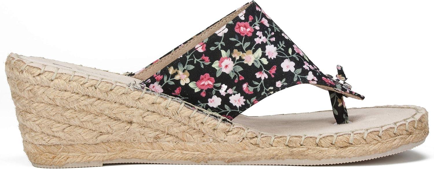 Wear the beach ball espadrille thong with all your summer attire. The rope wrapped wedge is 2 1/2 inches high and has lots of padding to keep you comfy. Choose denim or sparkle fabrics.