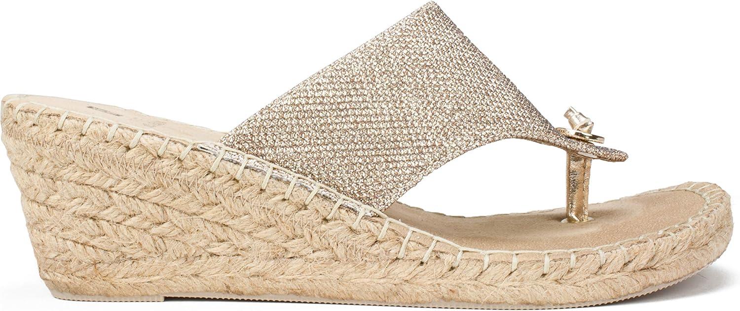 WHITE MOUNTAIN Women’s Beachball Espadrille Wedge Sandal(Ltgold/Glitter/Fab)