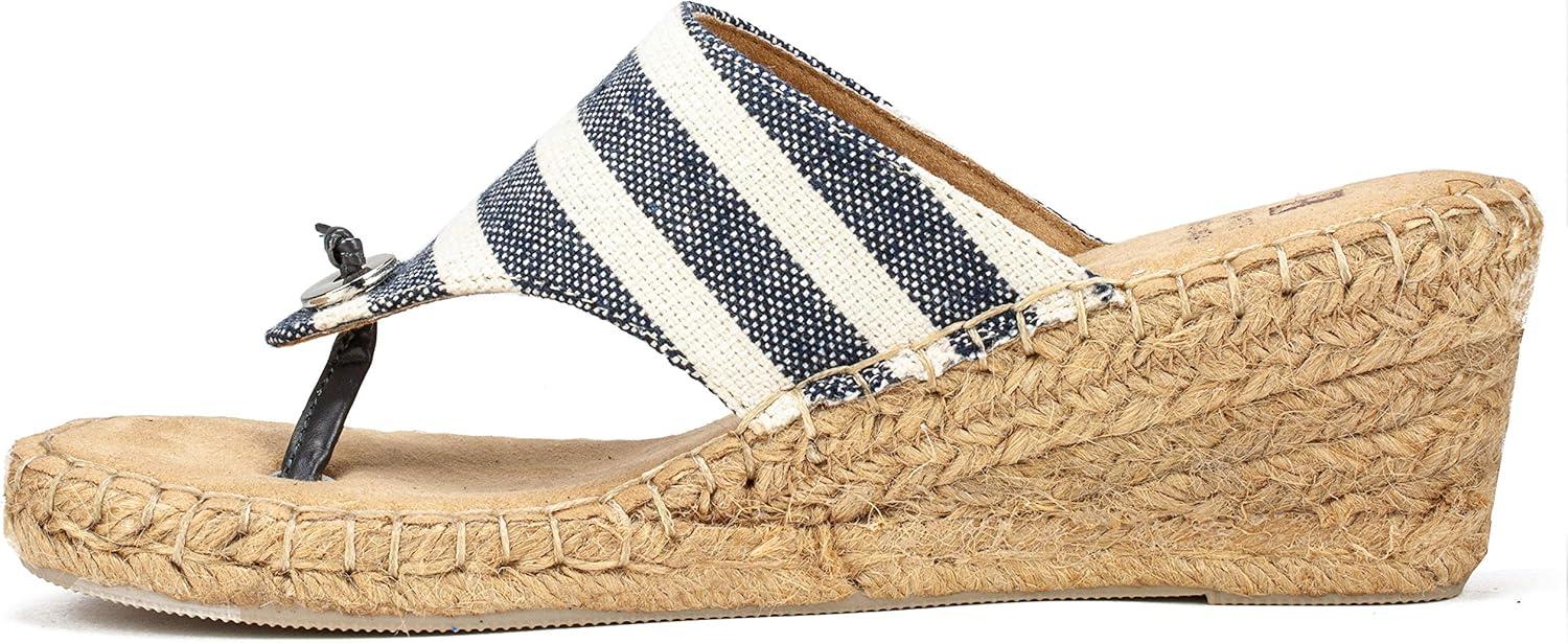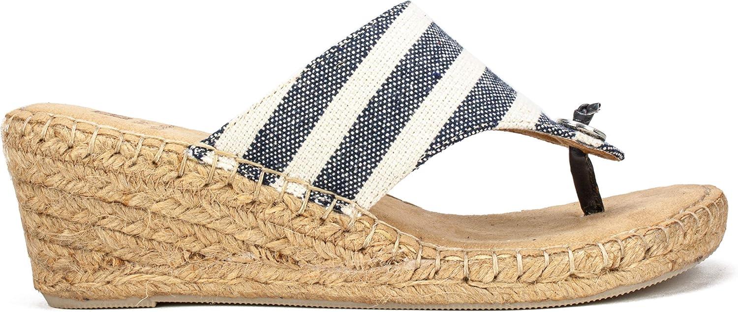 WHITE MOUNTAIN Women’s Beachball Espadrille Wedge Sandal(New Navy/Stripe/Fab)