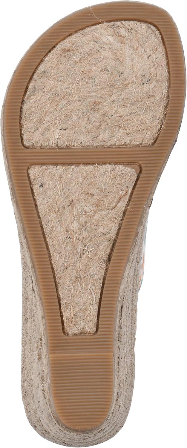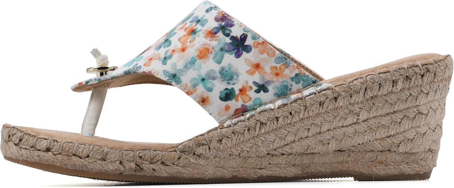 Wear the beach ball espadrille thong with all your summer attire. The rope wrapped wedge is 2 1/2 inches high and has lots of padding to keep you comfy. Choose denim or sparkle fabrics.