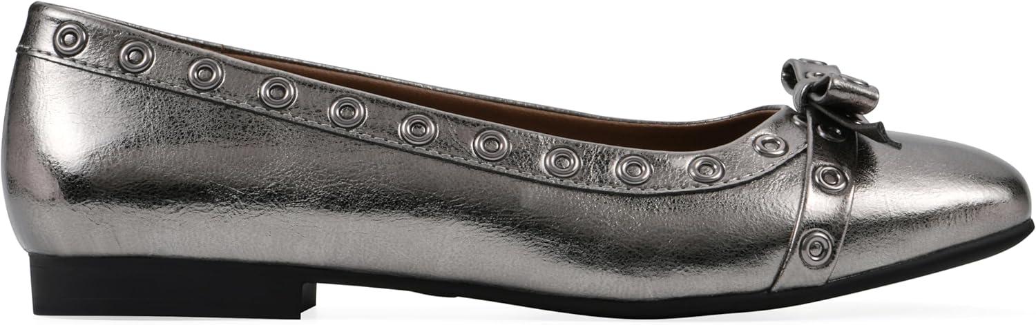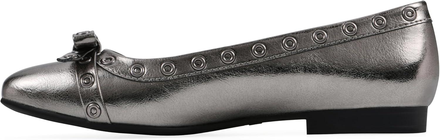 White Mountain Women’s Bodhi Cap Toe Ballet Flat(Pewter Metallic)