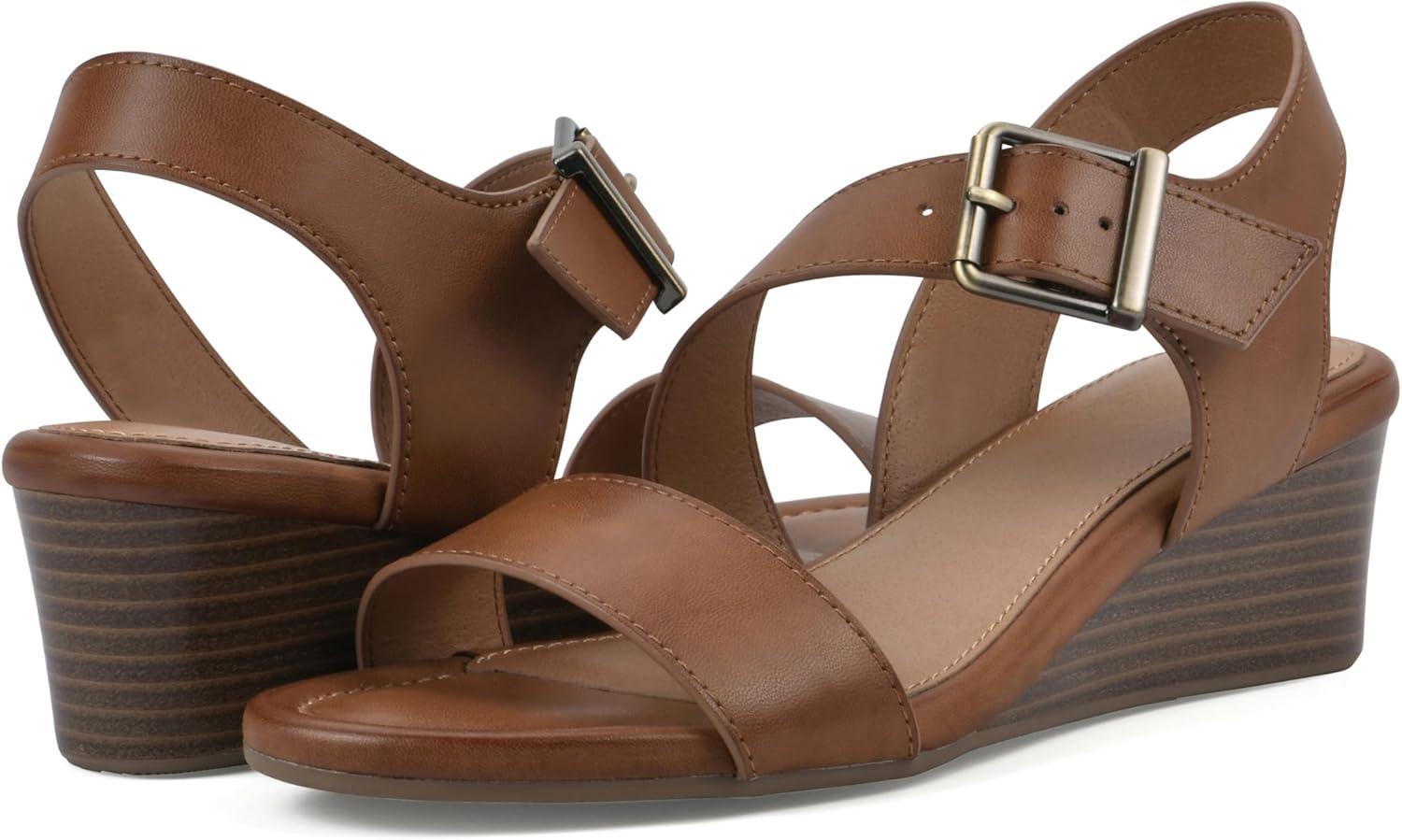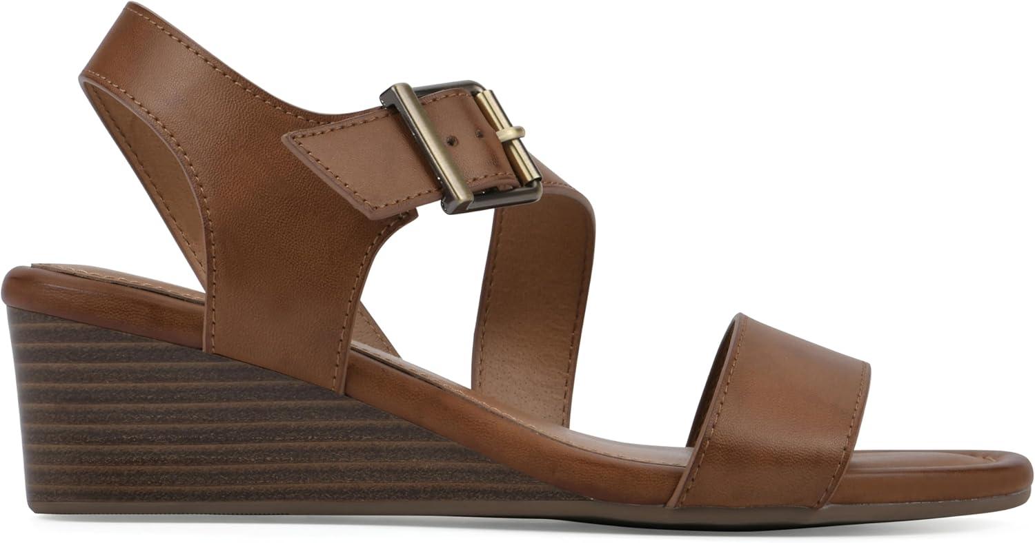 The Brux wedge sandal from White Mountain Shoes is perfect for everyday wear. This low wedge heel with adjustable ankle strap closure is guaranteed to provide comfort for any occasion.