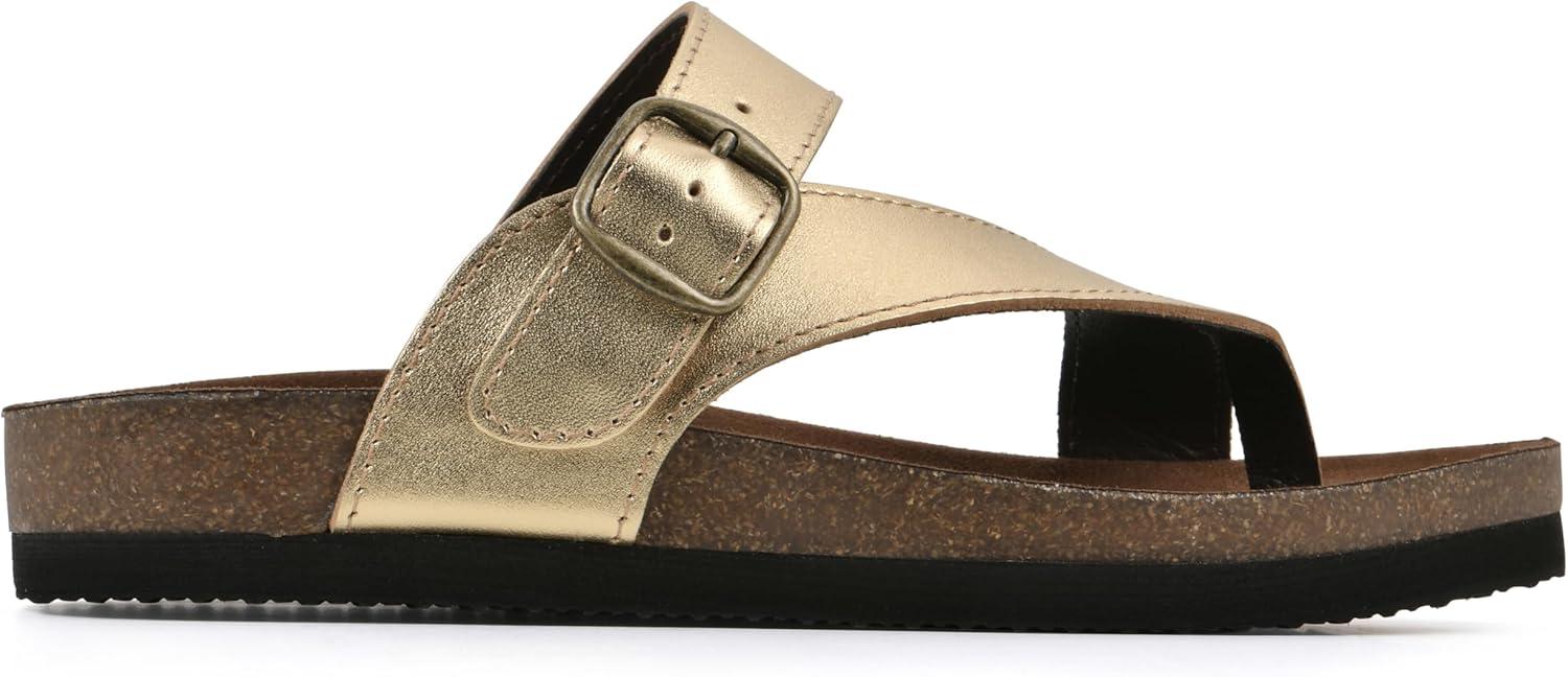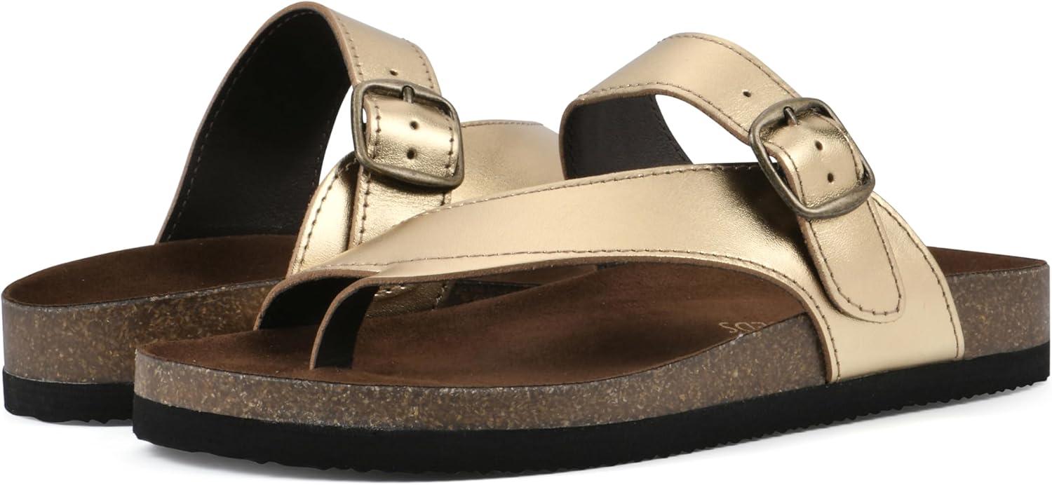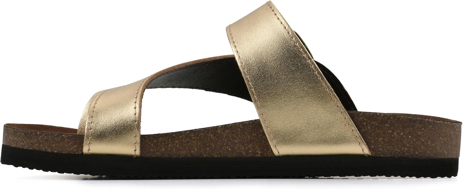 WHITE MOUNTAIN Women’s Carly Flat Sandal(Ant.gold/Lea (W/Brown Sole))