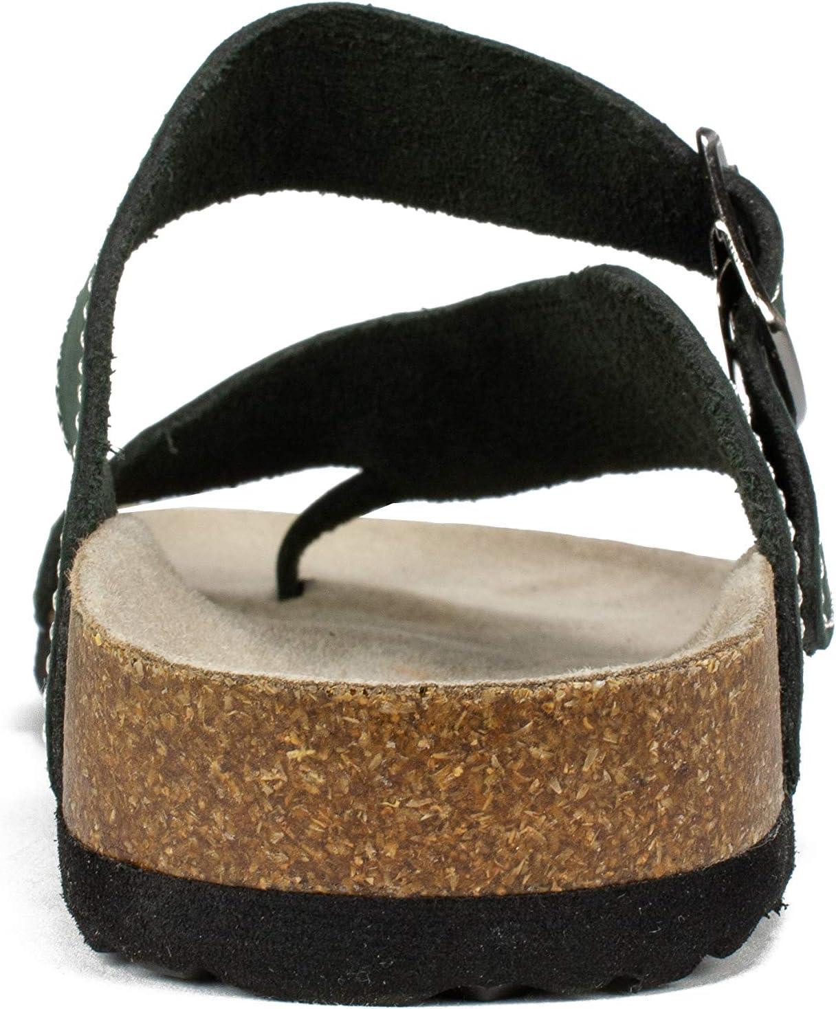 Super comfy carly foot bed will be your go-to sandal! This shoe features sueded padded insole and flexible bottom. Choose leather or cork print upper.