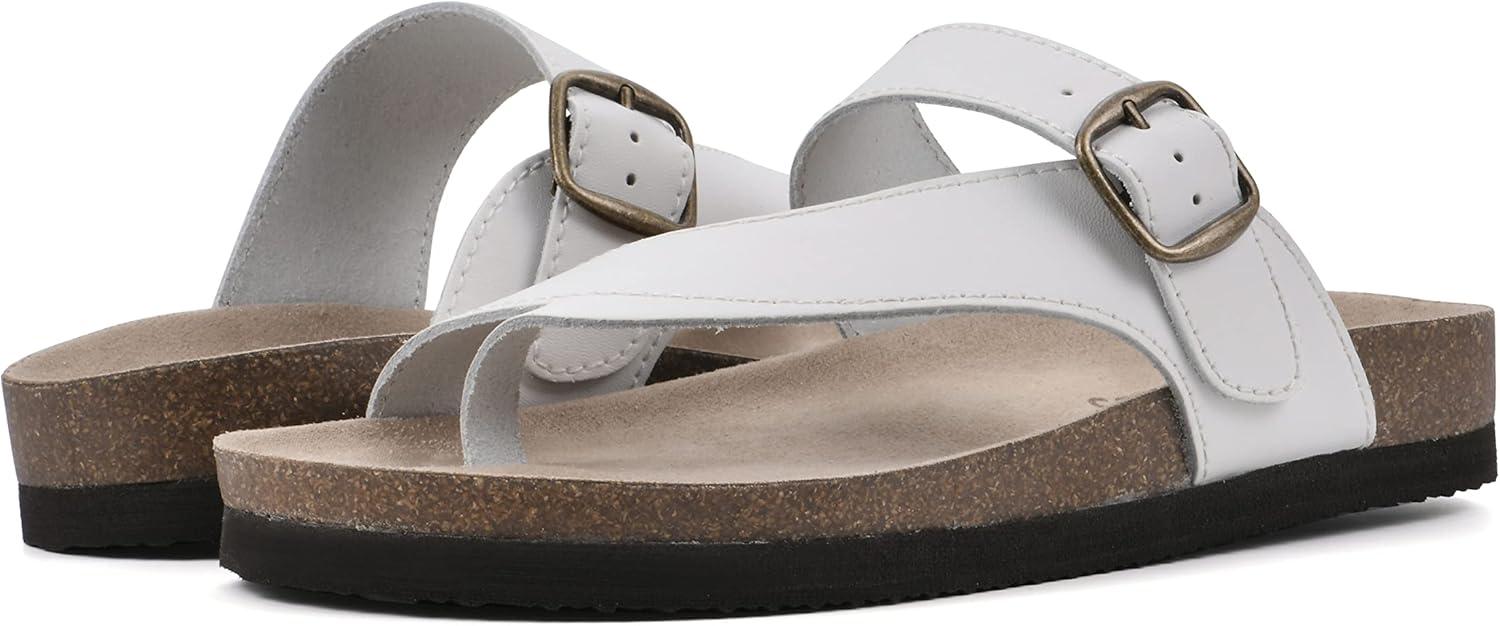 Super comfy carly foot bed will be your go-to sandal! This shoe features sueded padded insole and flexible bottom. Choose leather or cork print upper.