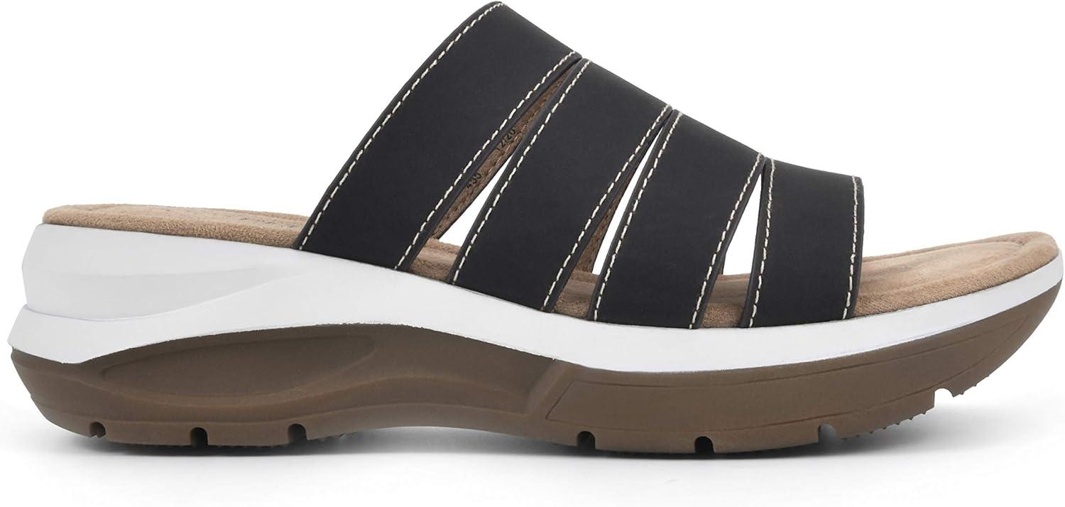 Need comfort? The Fascinate slide by White Mountain Footbeds™ is your answer. This slide features multi-banded leather straps with a cushioned footbed and a treaded athletic bottom. Savor the comfort of a sneaker with breathability and ease of a sandal.