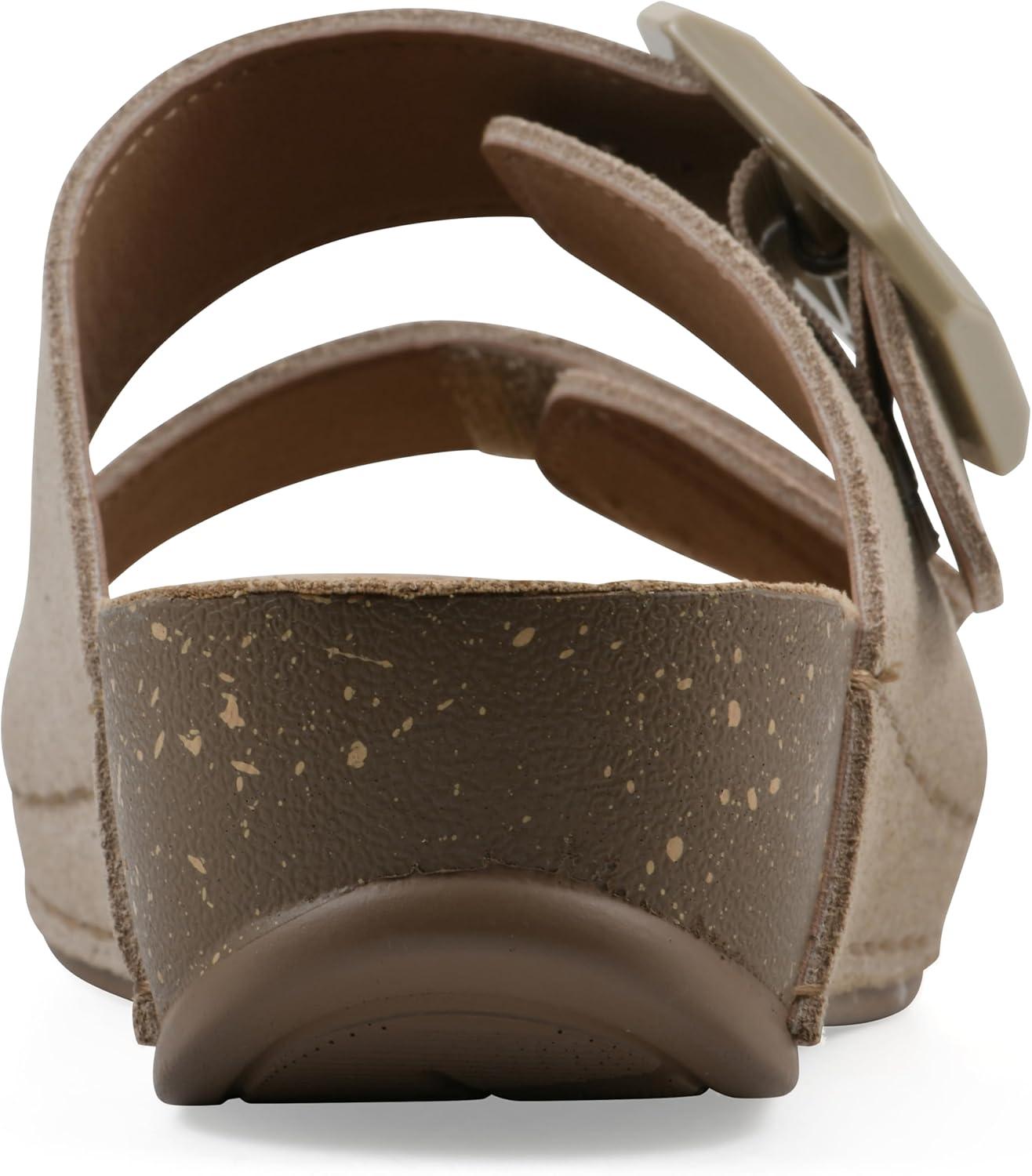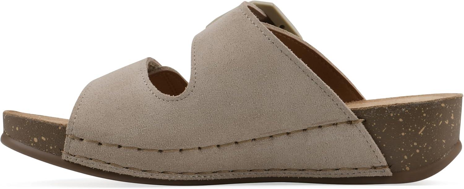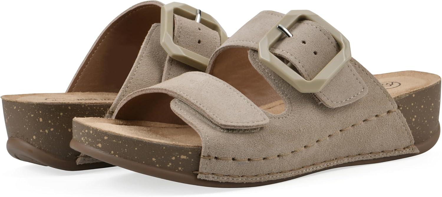WHITE MOUNTAIN Women’s Fearful Double-Strap Mini-Wedge Sandal(Sandal Wood/Suede)