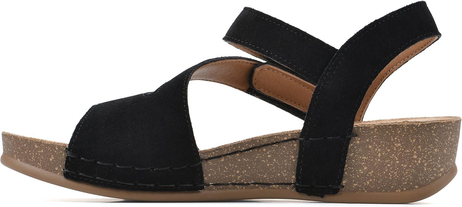 WHITE MOUNTAIN Women’s Fern Wedge Sandal(Black/Suede)
