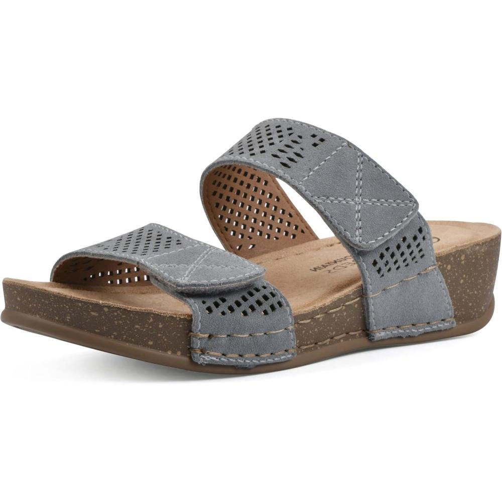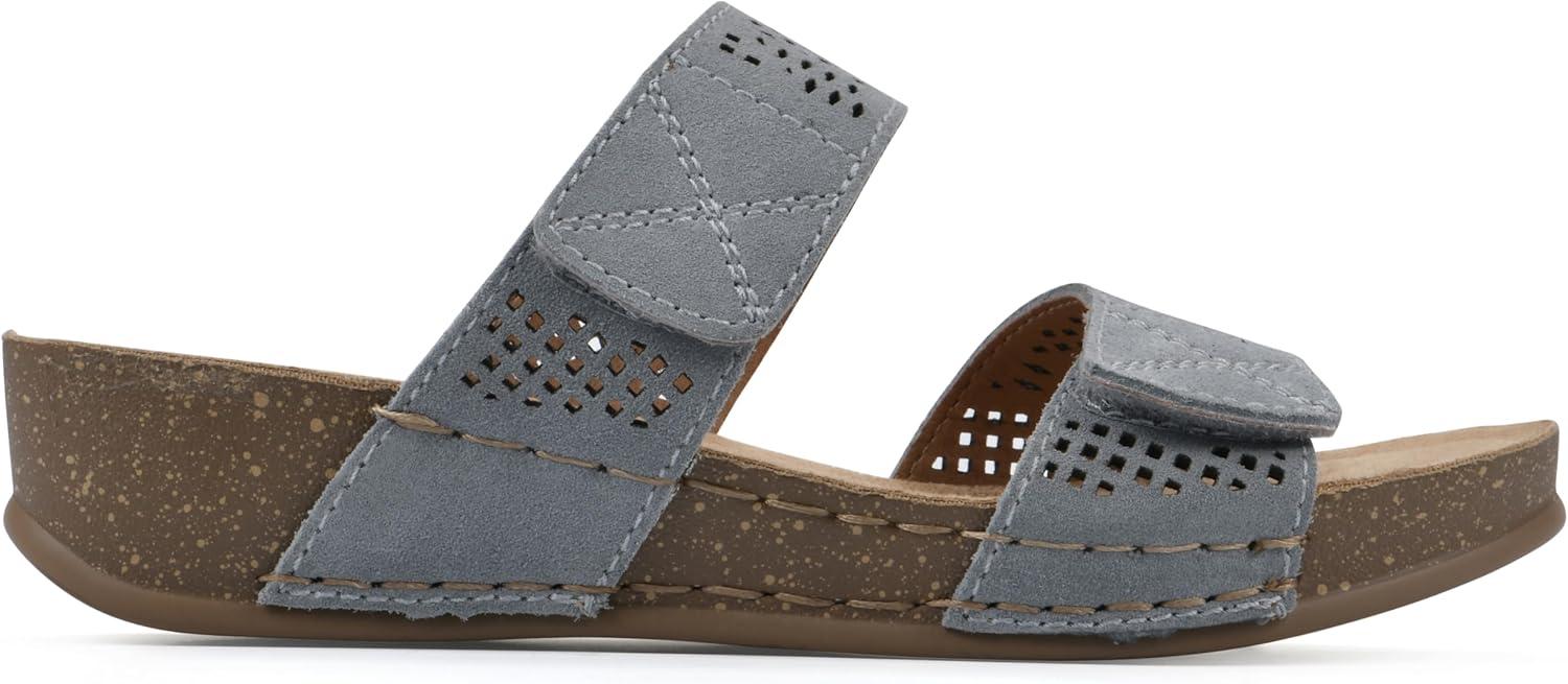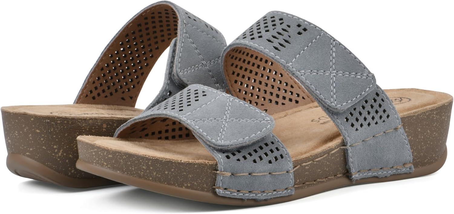 Enjoy a little bit of height and day long comfort with the Ferula sandal from White Mountain Shoes. These shoes feature an easy slip-on design with breathable adjustable straps for comfort and ease.