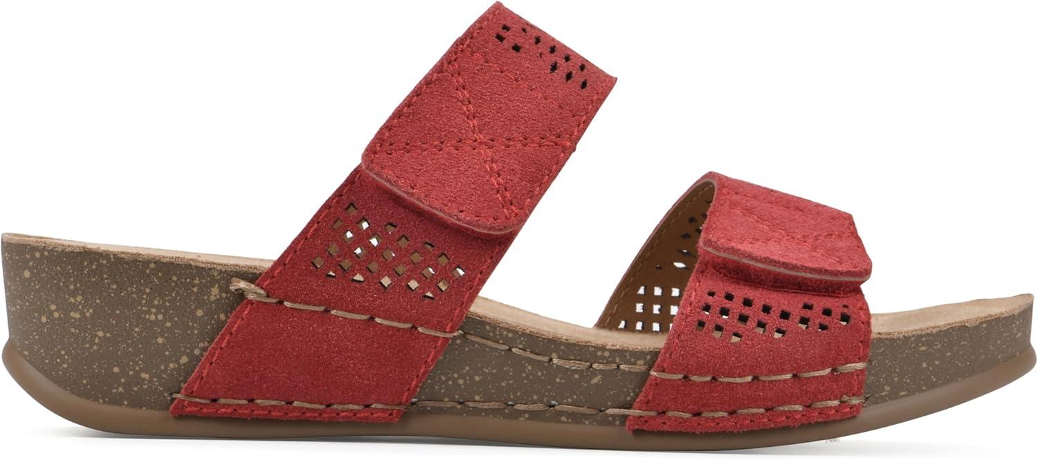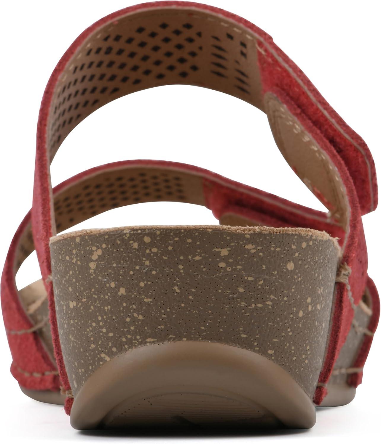 WHITE MOUNTAIN Women’s Ferula Wedge Sandal(Cruella Red/Suede)