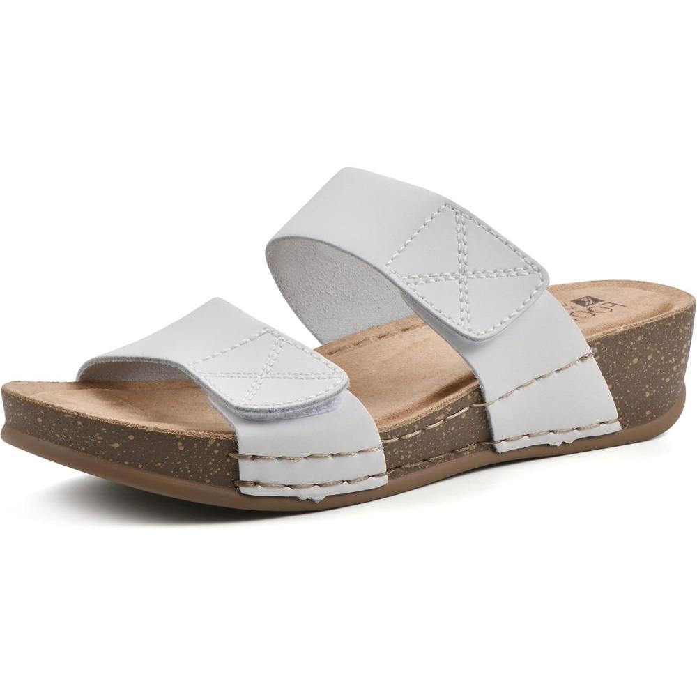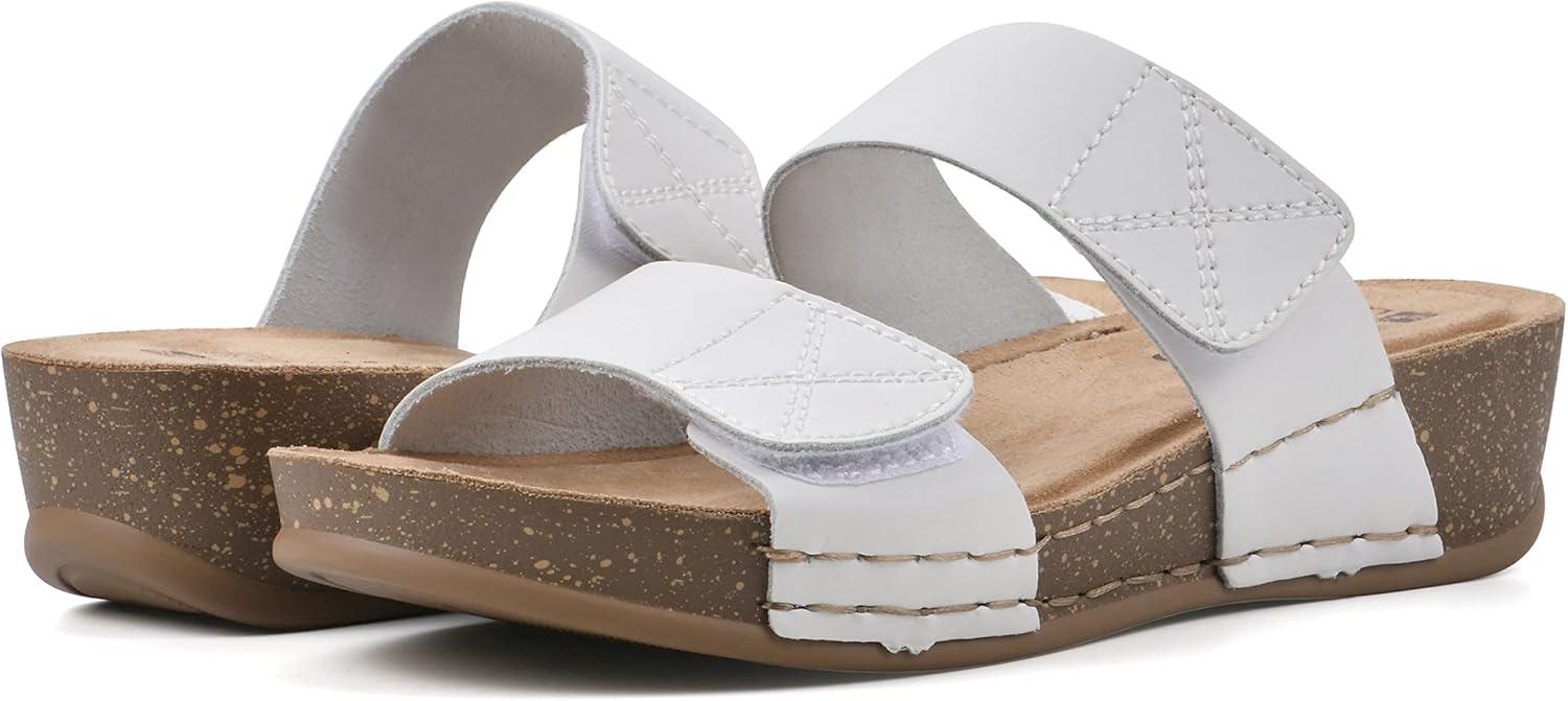 Slip into the Fervent slide sandal by White Mountain Shoes. This slip-on style is placed on a faux cork bottom and padded under foot for maximum comfort. This style has adjustable straps for a custom fit!