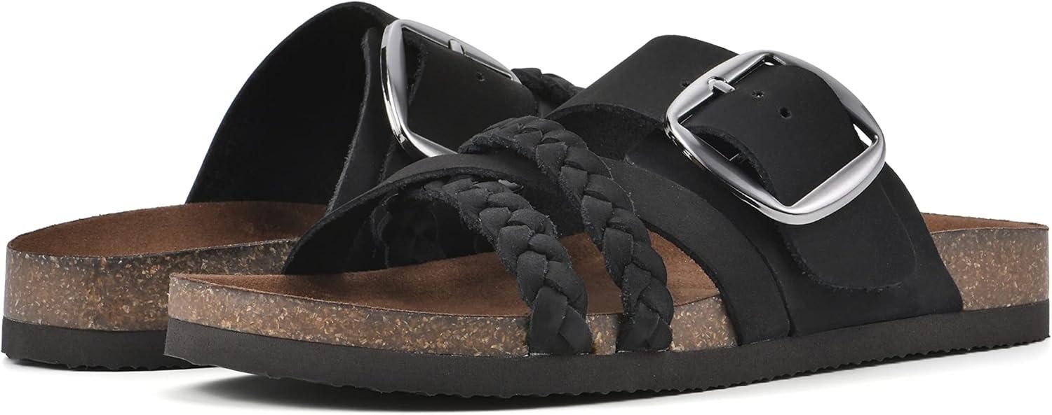 WHITE MOUNTAIN Women’s Healing Footbed Sandal(Black/Nubuck)