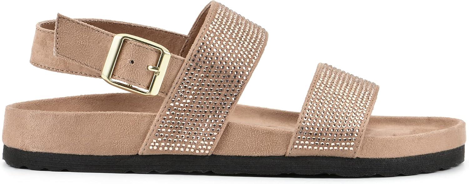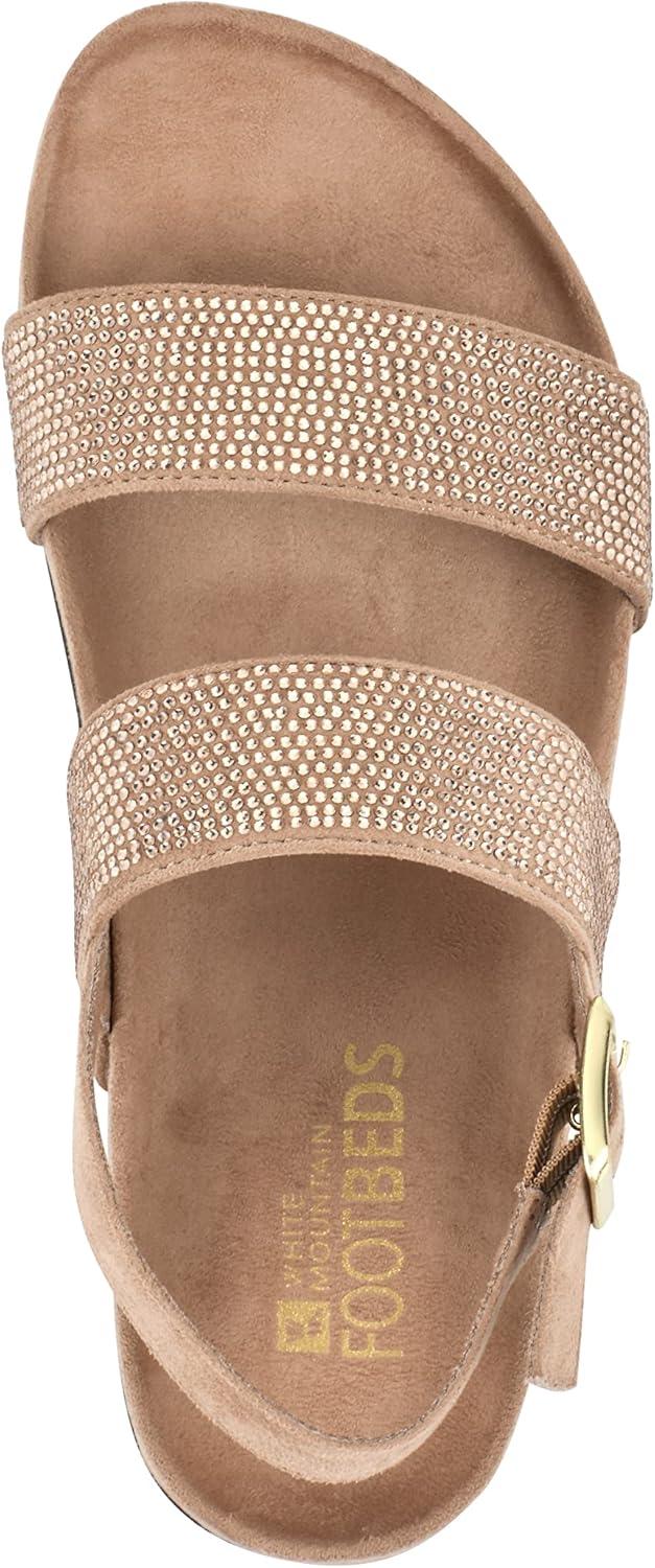 Buckle into the Hesitant Footbeds Sandal by White Mountain Shoes. Slide into the rhinestone-encrusted double strap sandal and secure your foot in place with the adjustable heel strap. The soft fabric-covered contoured footbed takes it to the next level.