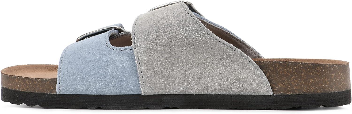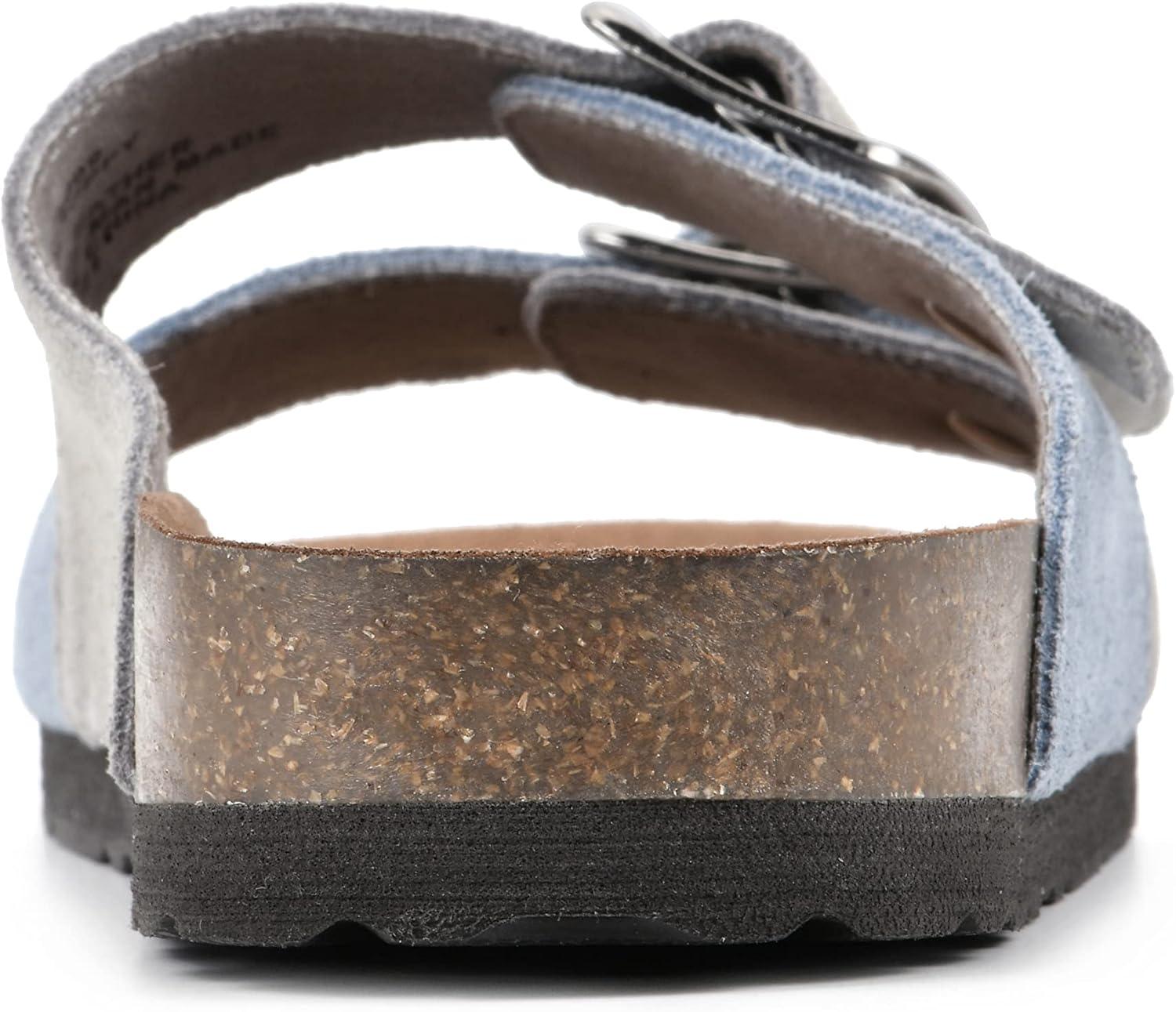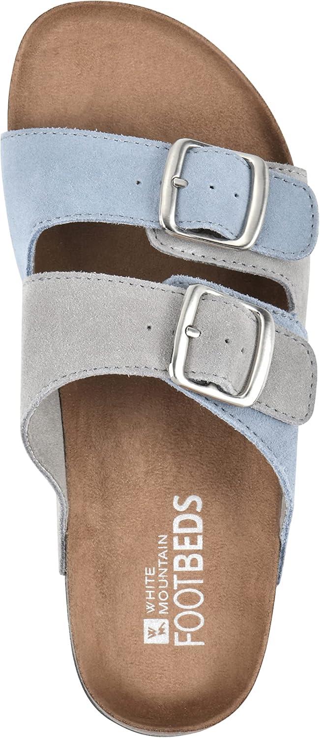 WHITE MOUNTAIN Women’s Hippy Footbed Sandal(Dustyteal/Ltgrey/Leather)