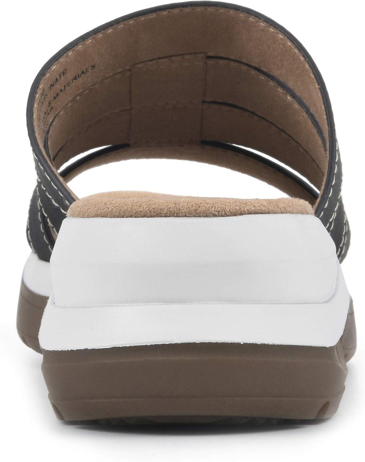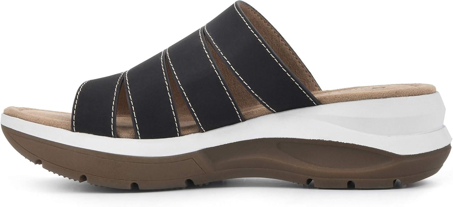 Sparkle in the classic double buckle Horizon slide sandal with molded suedette footbed by White Mountain Shoes. Ready for a summer party this glitterati fabric sandal boasts ultra shiny buckle hardware with metal tipped edges.
