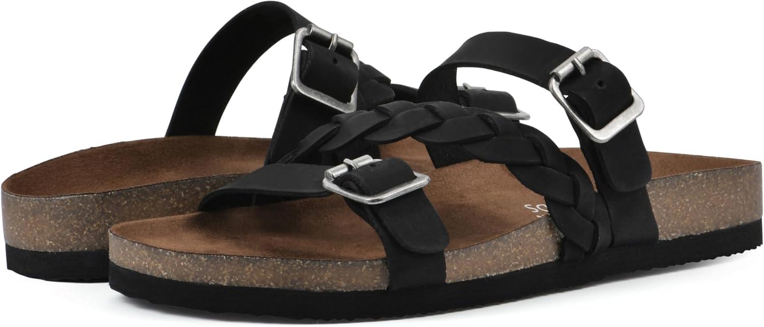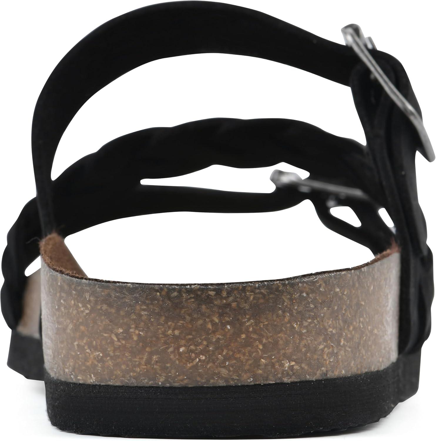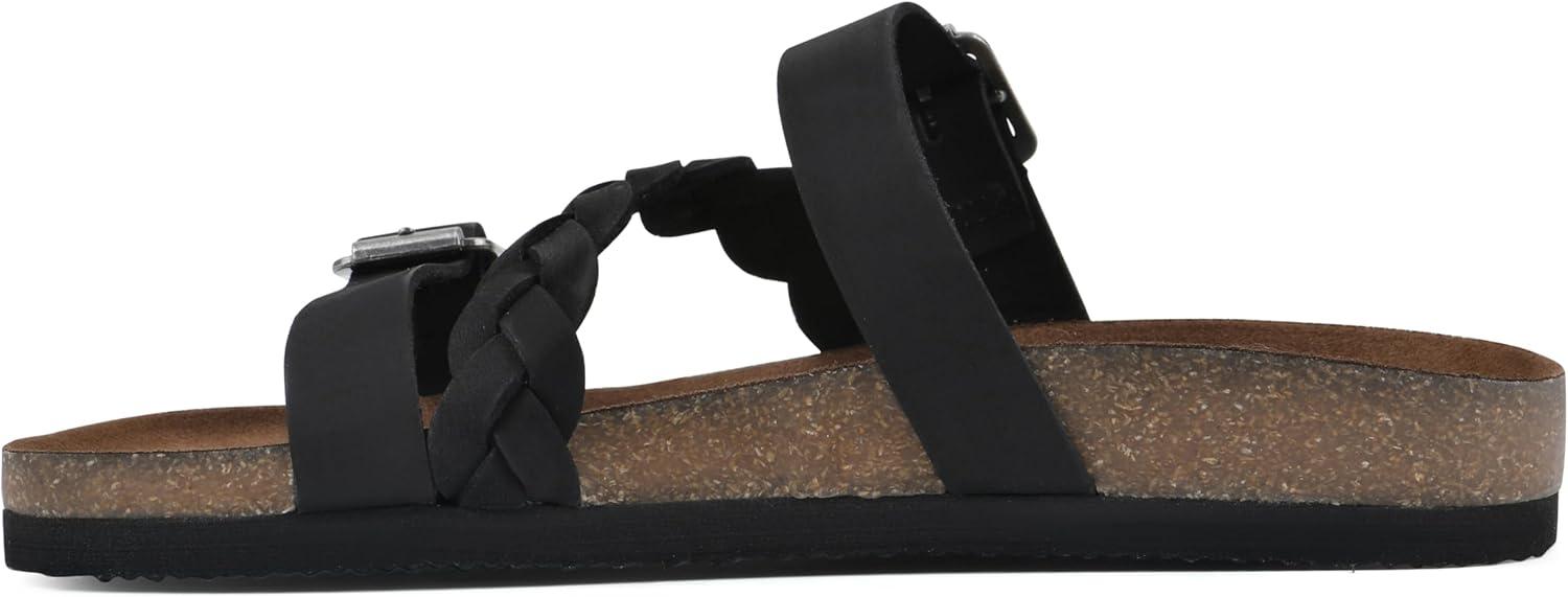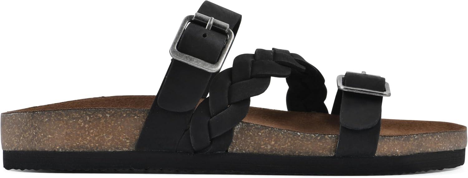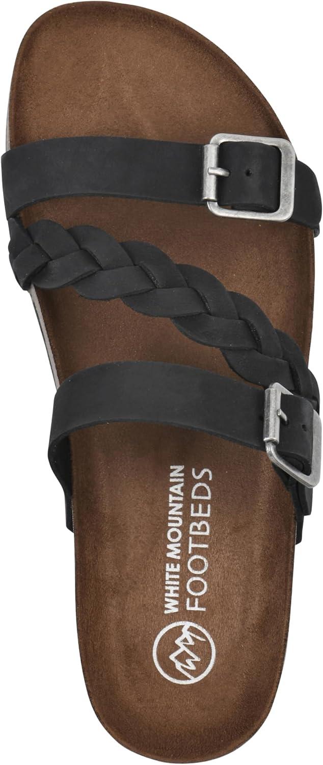 WHITE MOUNTAIN Women’s Huntington Signature Comfort Molded Footbed Double Buckle Braided Sandal(Black/Nubuck)