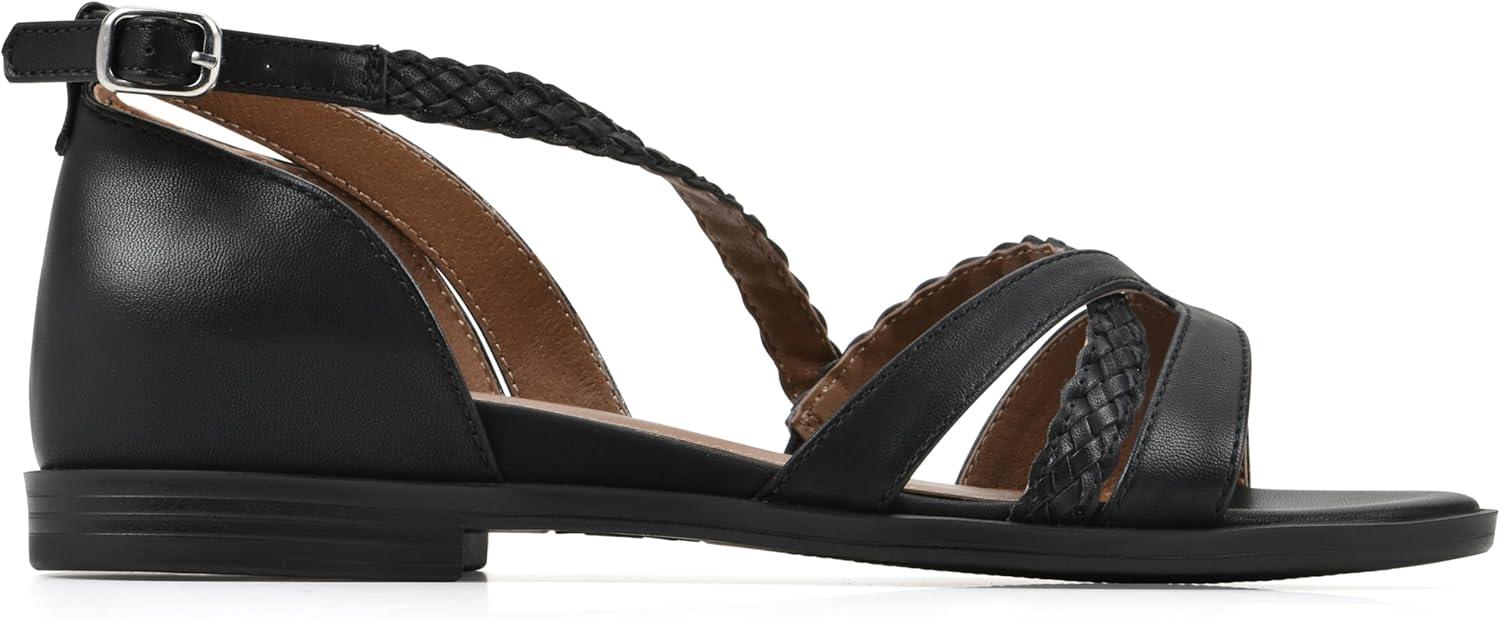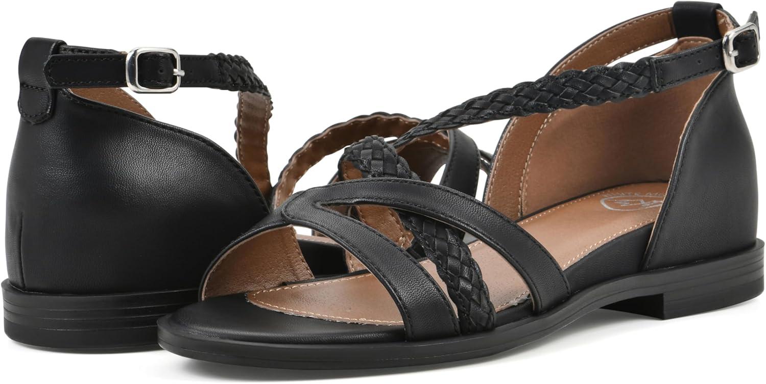 WHITE MOUNTAIN Women’s Kika Open Toe Flat Sandal(Black/Smooth)