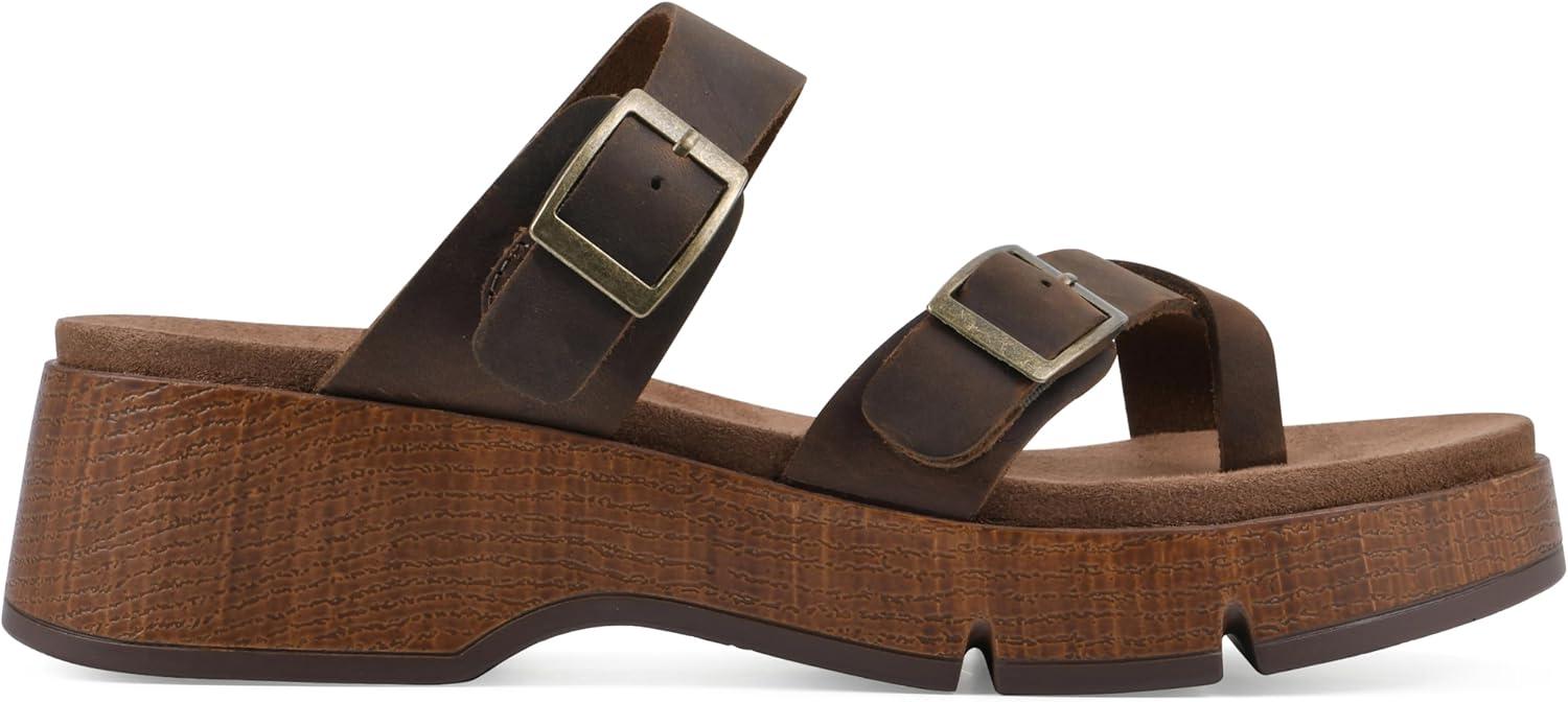 WHITE MOUNTAIN Women’s Lefter Low Platform Sandal(Brown/Leather)