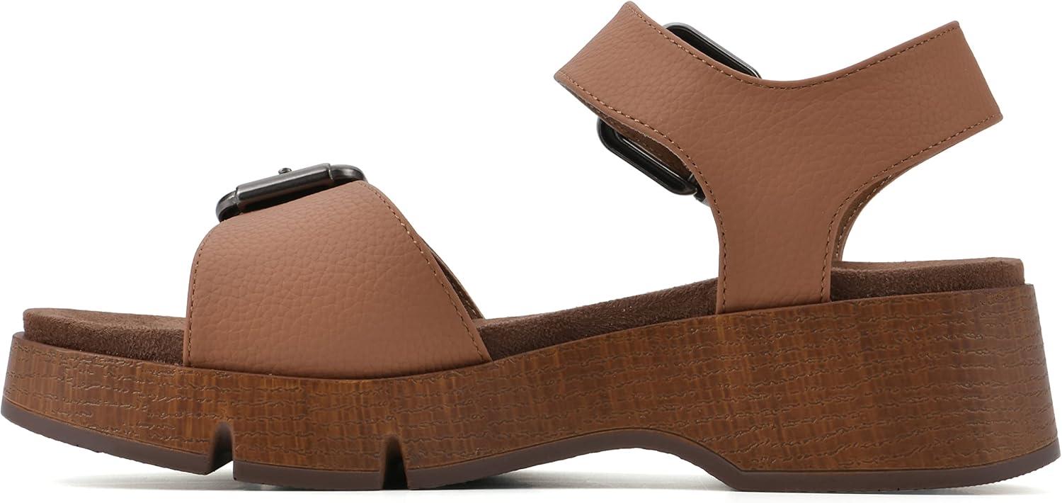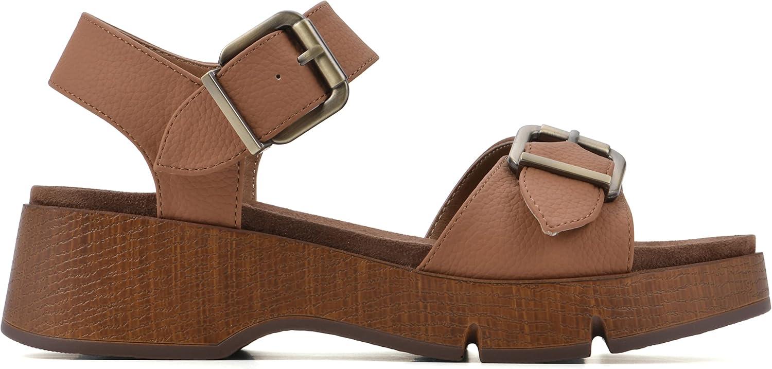 Make a statement in the Leftmost sandal by White Mountain Shoes. This platform sandal features adjustable buckles for a perfect fit and a lugged faux wood sole for all the cool girls out there. The outsole is super flexible and paired with a molded insole for comfort and support.