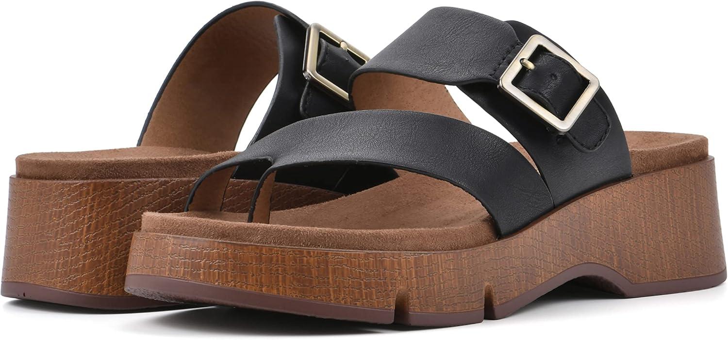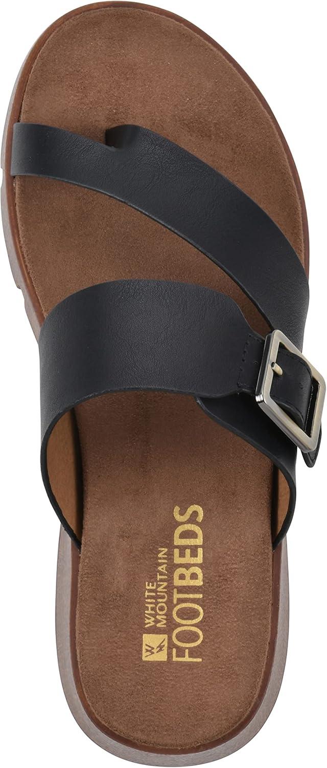 The Leftover by White Mountain Shoes thong sandal is the cool new addition to your closet. This flexible faux wood lugged sole and contoured footbed make this comfortable and stylish. An adjustable buckle on the top strap lets you fine tune your fit to best suit your foot.