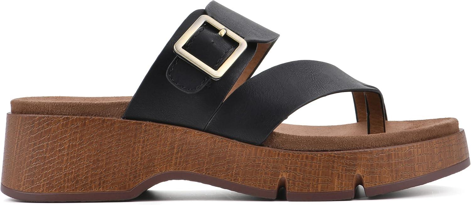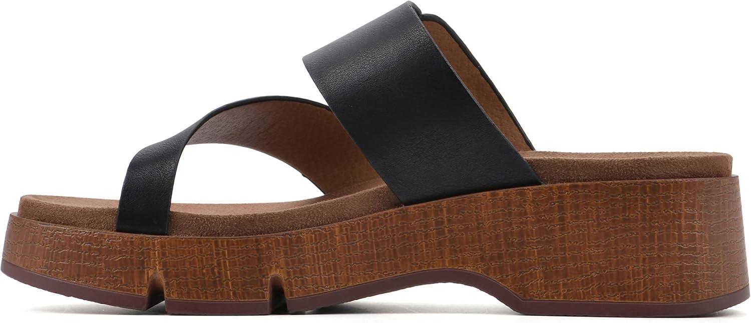 WHITE MOUNTAIN Women’s Leftover Platform Sandal(Black/Burn/Smooth)