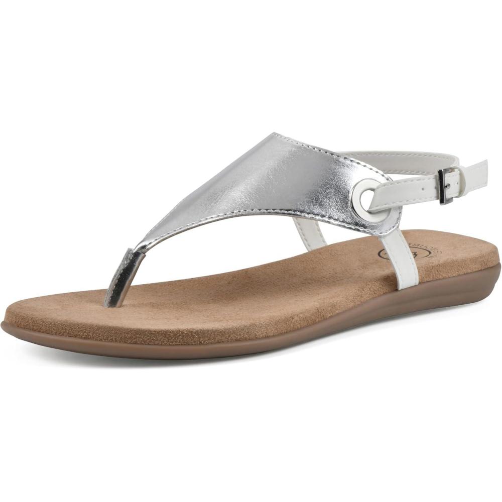 WHITE MOUNTAIN Women’s London Flat Sandal(Silver/Smooth)