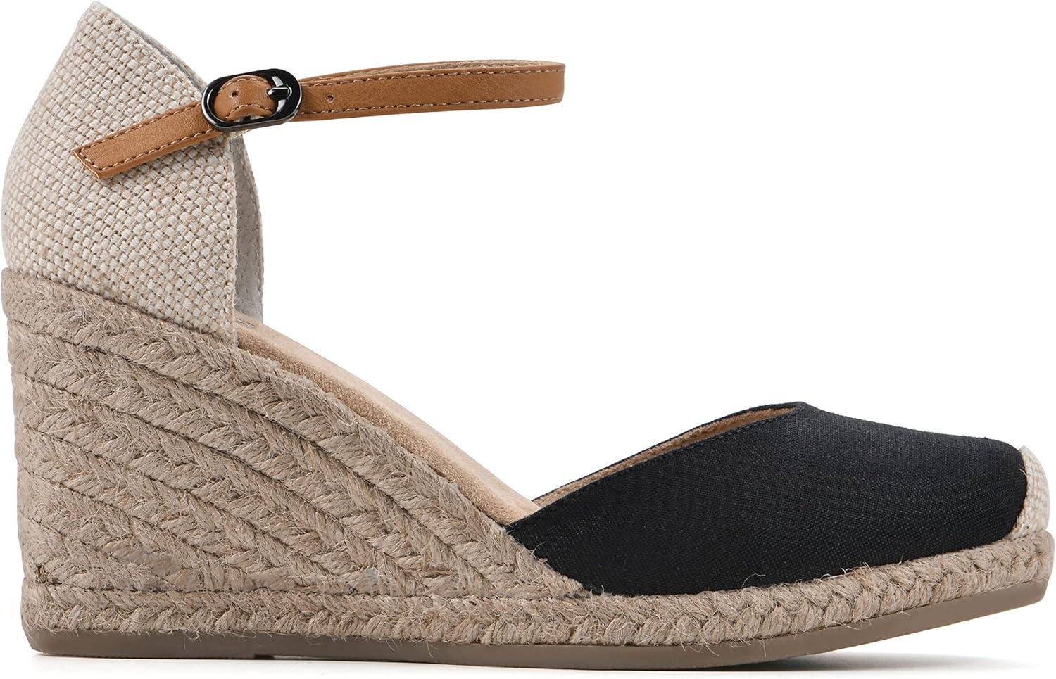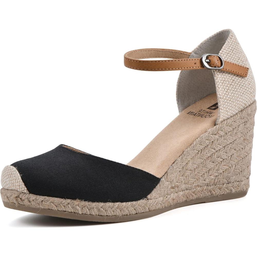 WHITE MOUNTAIN Women’s Mamba Espadrille Wedge Sandal(Black/Fabric)