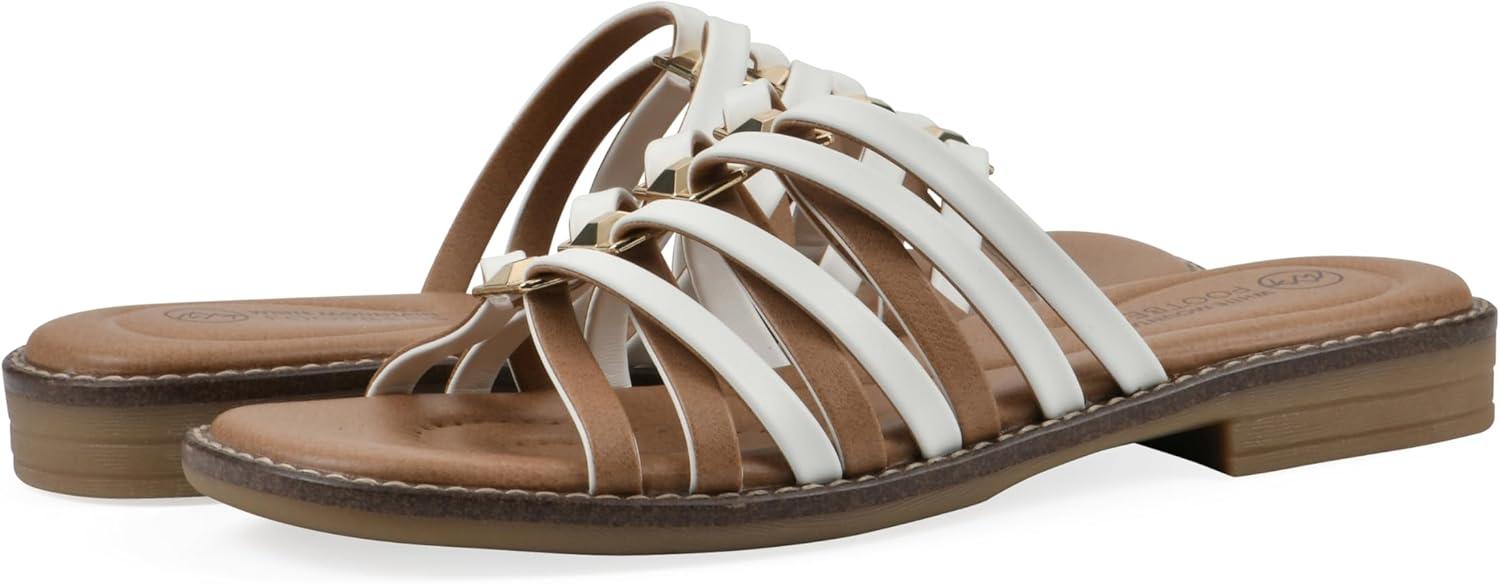 Upgrade your summer wardrobe with effortless charm Mazy sandal from White Mountain Shoes. Perfect for sun soaked days, these sandals offer a stylish design that pairs beautifully with any outfit. The crisscross multi banded straps provide a sophisticated yet breezy look offering a perfect balance of fashion and function.