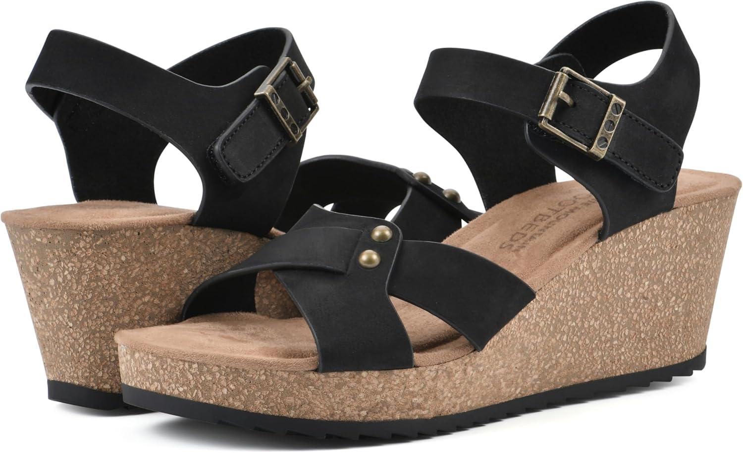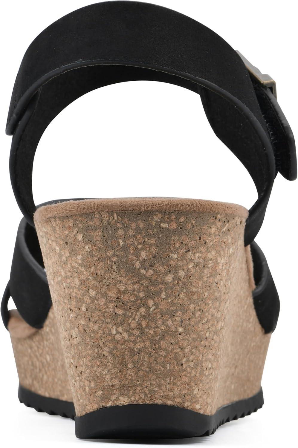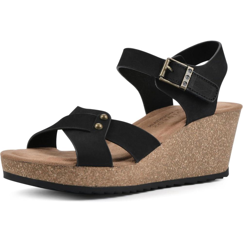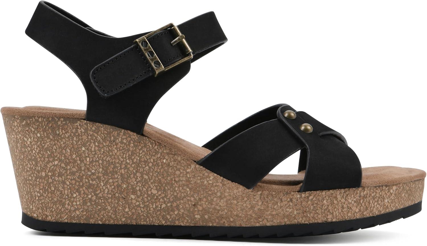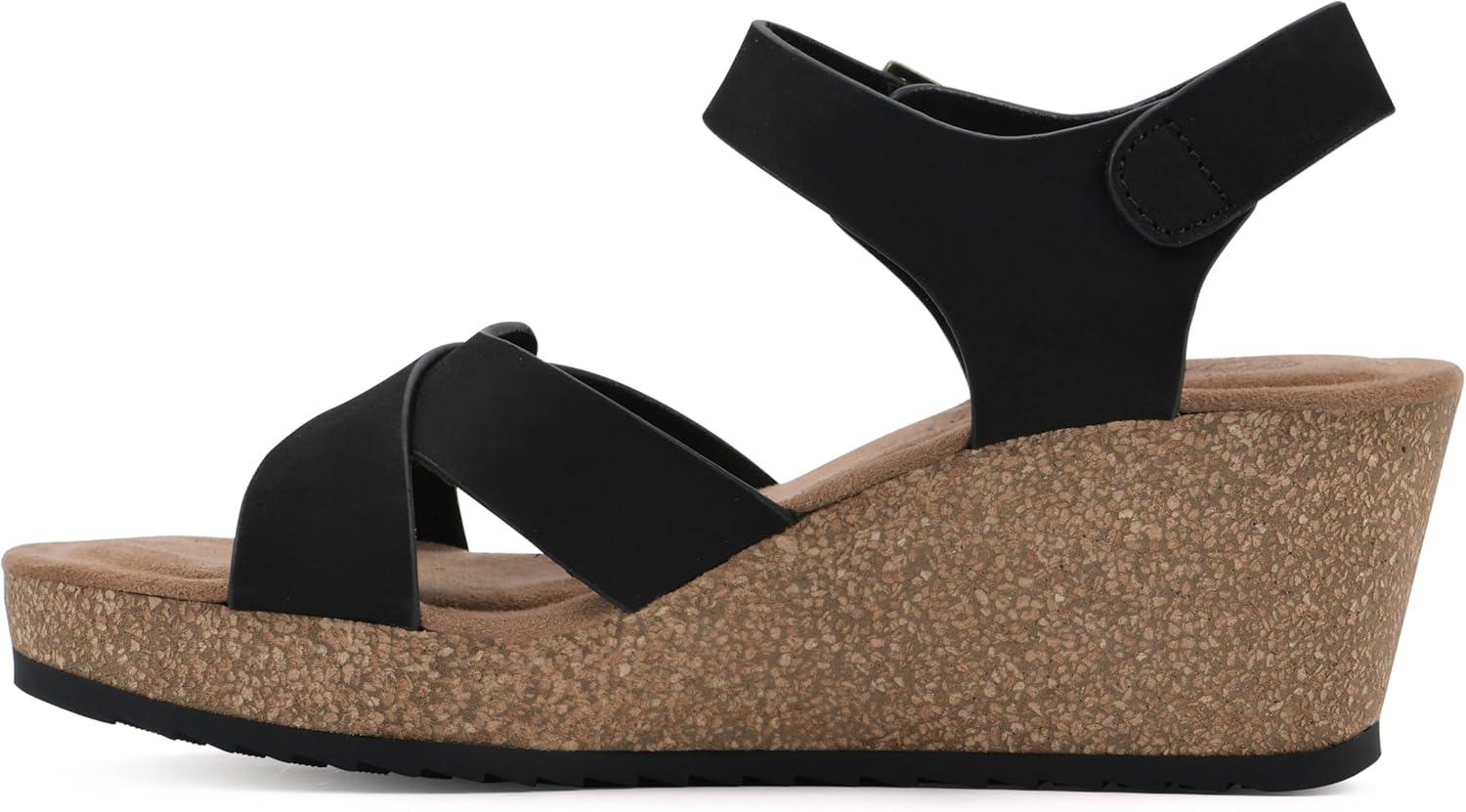 WHITE MOUNTAIN womens PrezoWedge Sandal(Black/Nubuck)