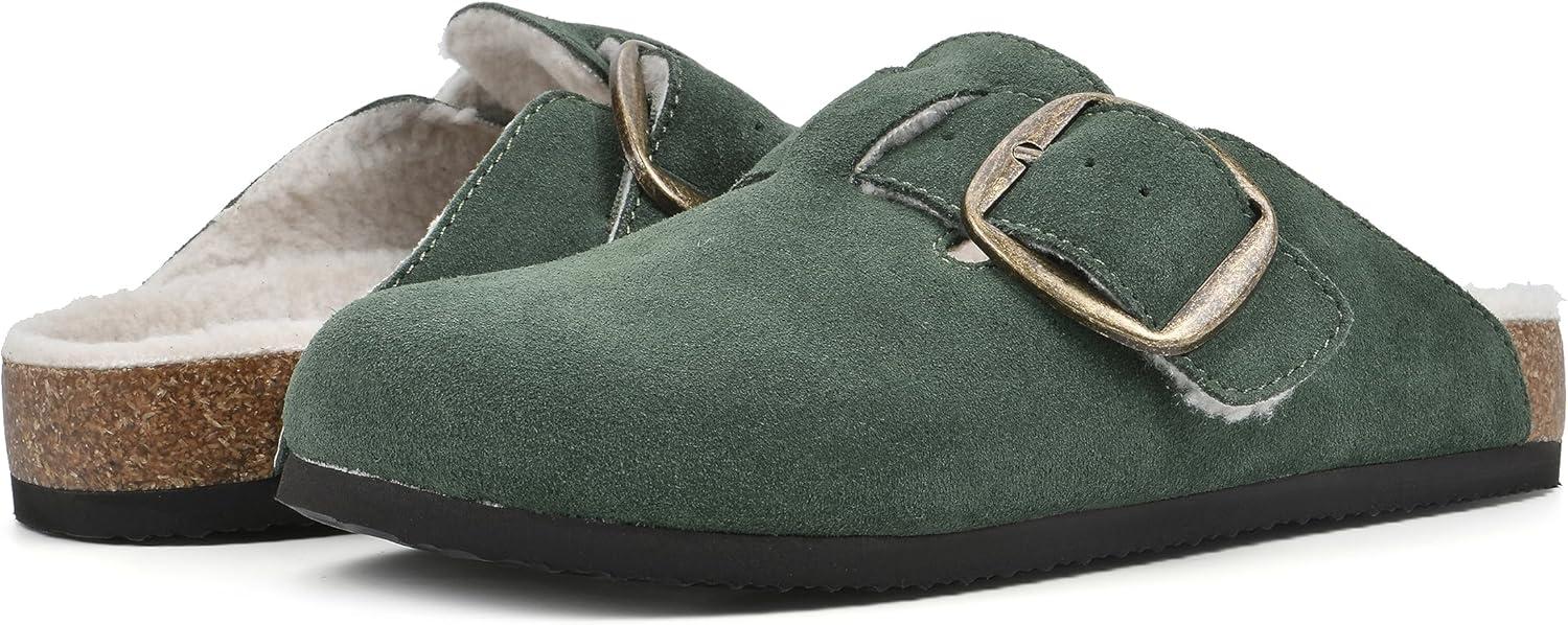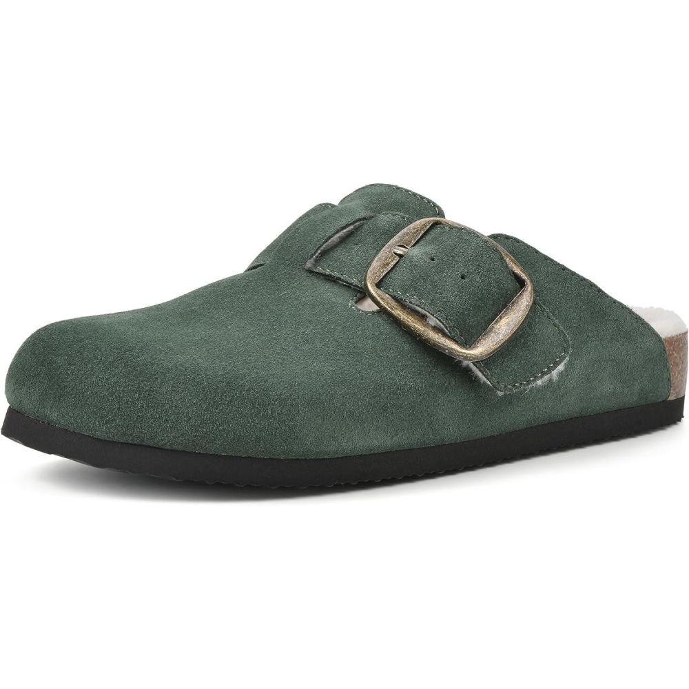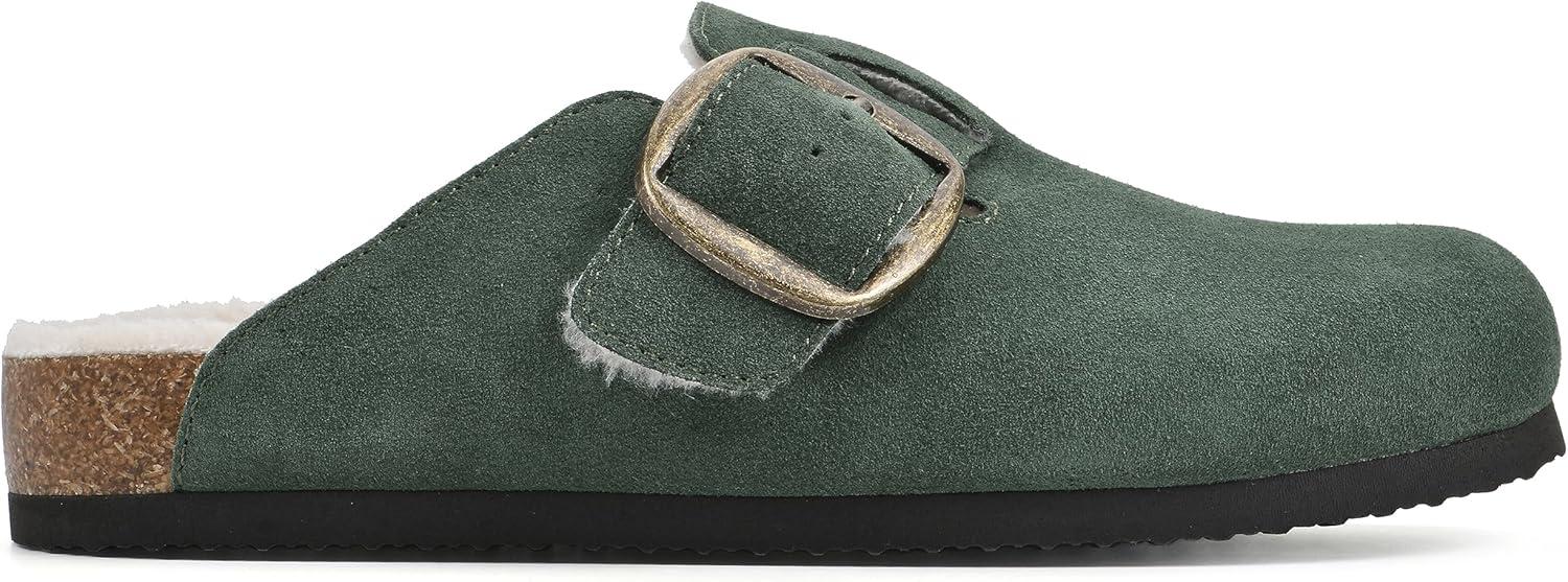 WHITE MOUNTAIN Women’s Shoes Big Sur Clog Footbed(Hunter Green/Suede/W/Fur)