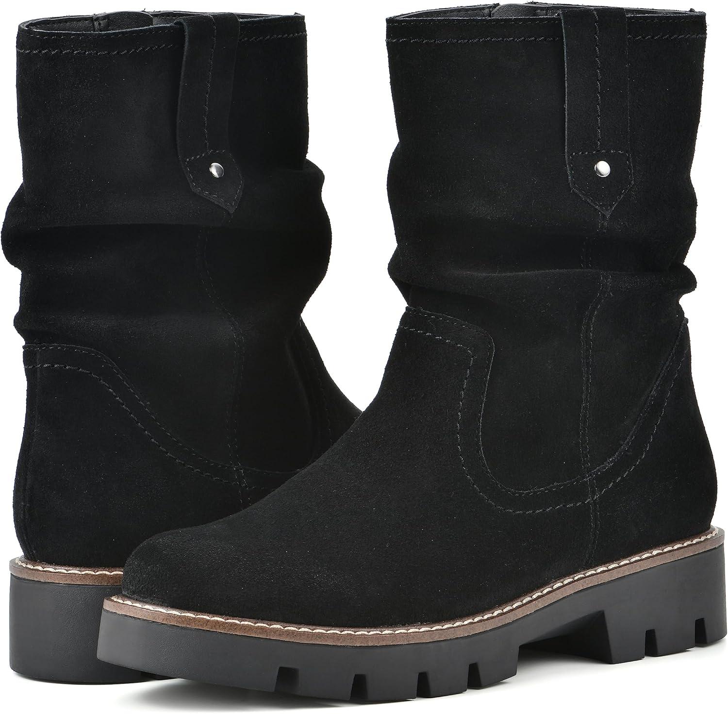 WHITE MOUNTAIN Women’s Shoes Glean Lug Sole Mid Calf Boot(Black/Suede)
