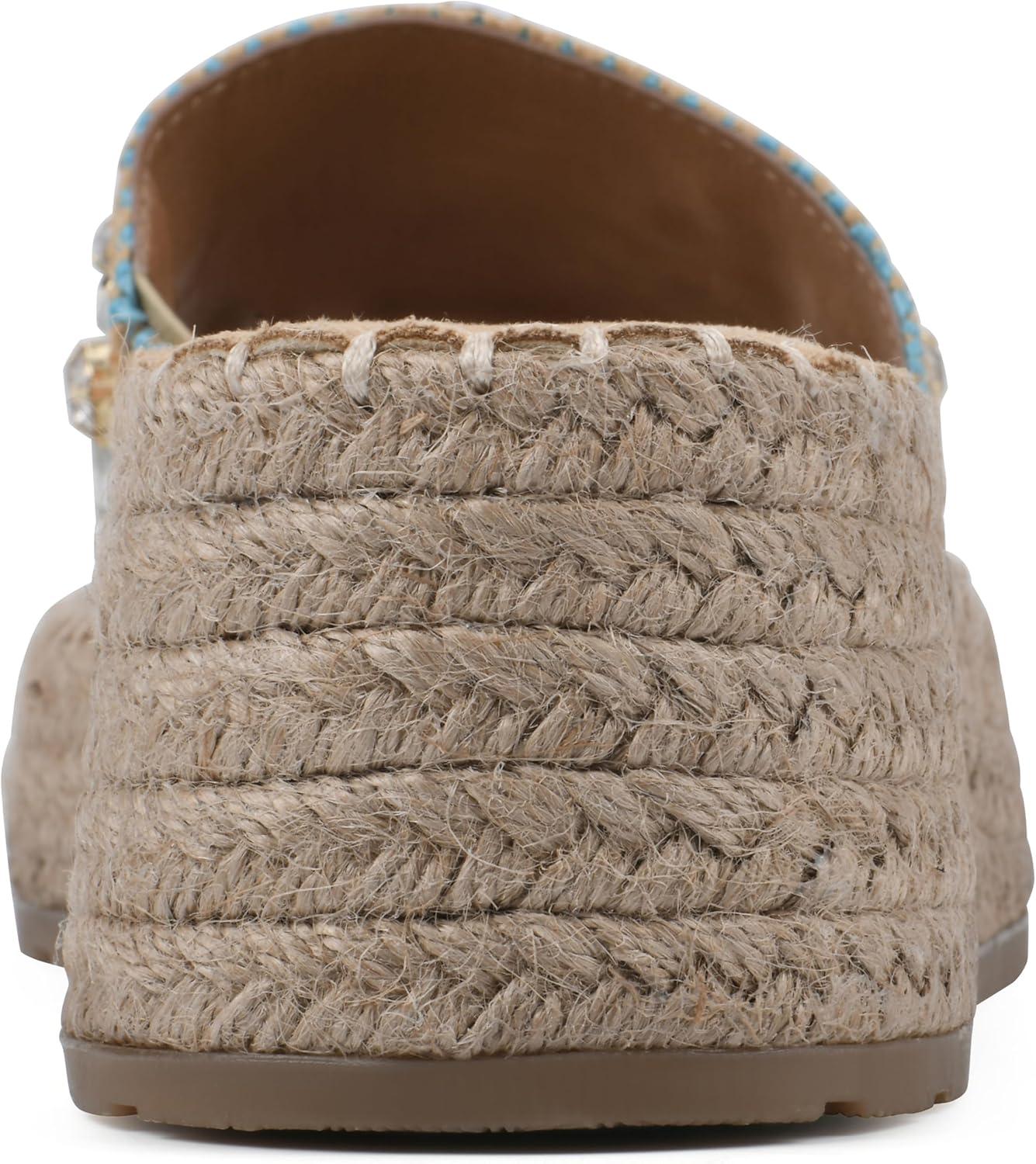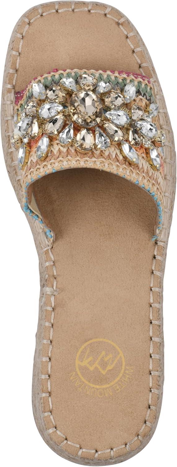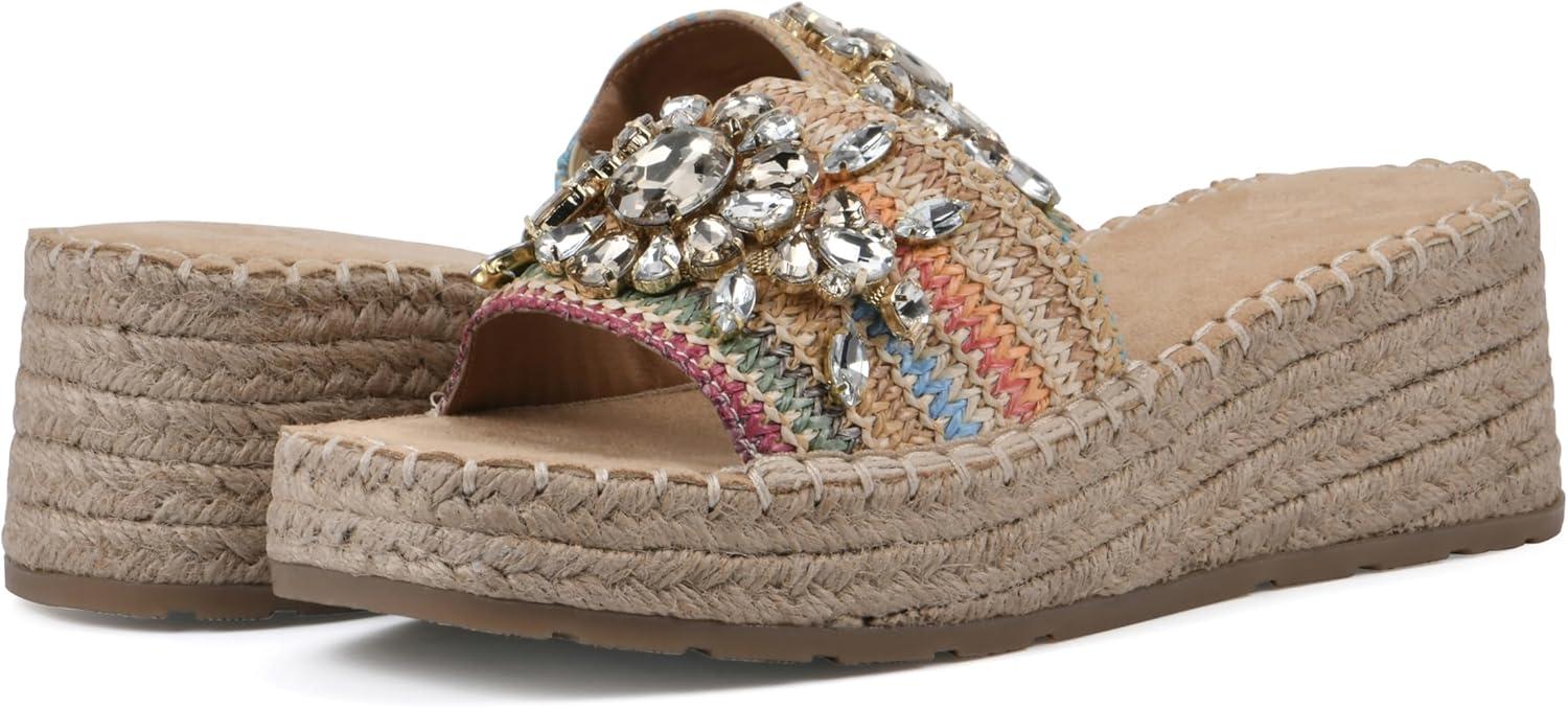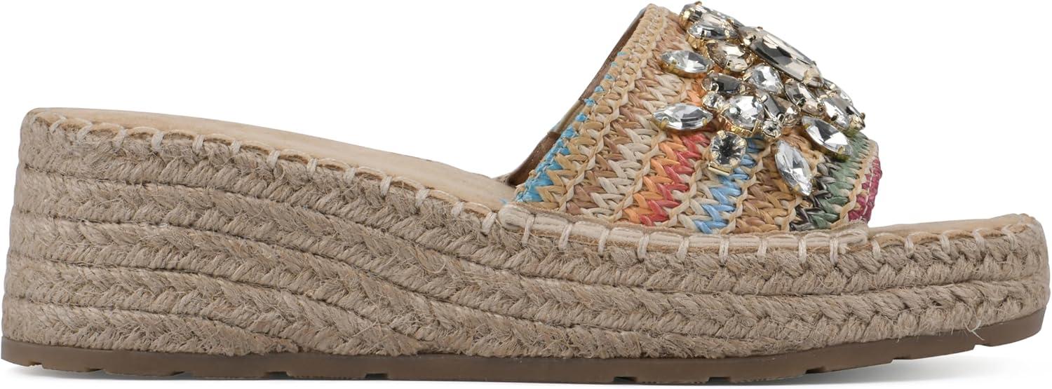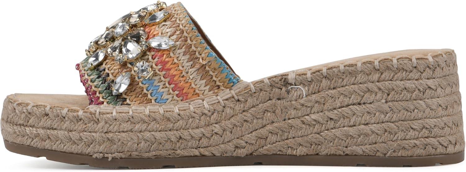 Slip-on the Stitch platform wedge sandal by White Mountain Shoes this summer for a bold and beautiful look. The jute-wrapped espadrille-inspired bottom and bejeweled strap adds gorgeous textures to any summer outfit.