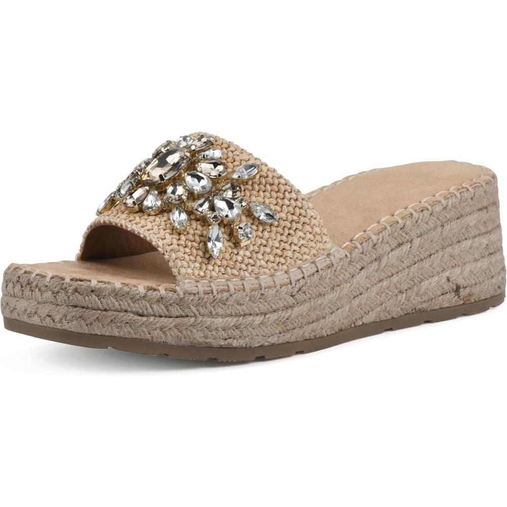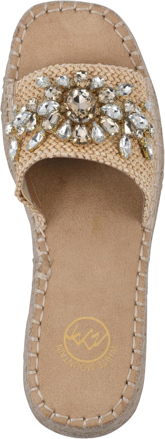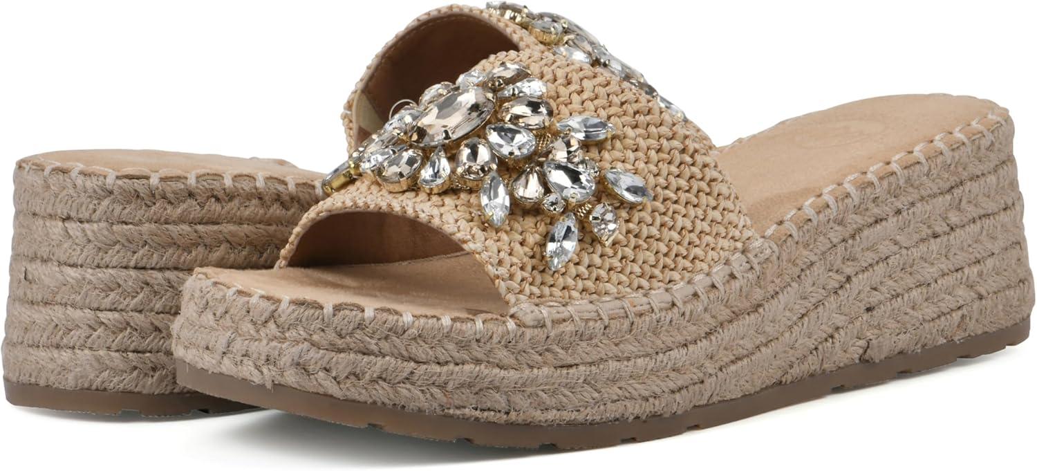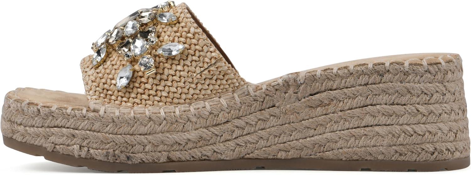 Slip-on the Stitch platform wedge sandal by White Mountain Shoes this summer for a bold and beautiful look. The jute-wrapped espadrille-inspired bottom and bejeweled strap adds gorgeous textures to any summer outfit.
