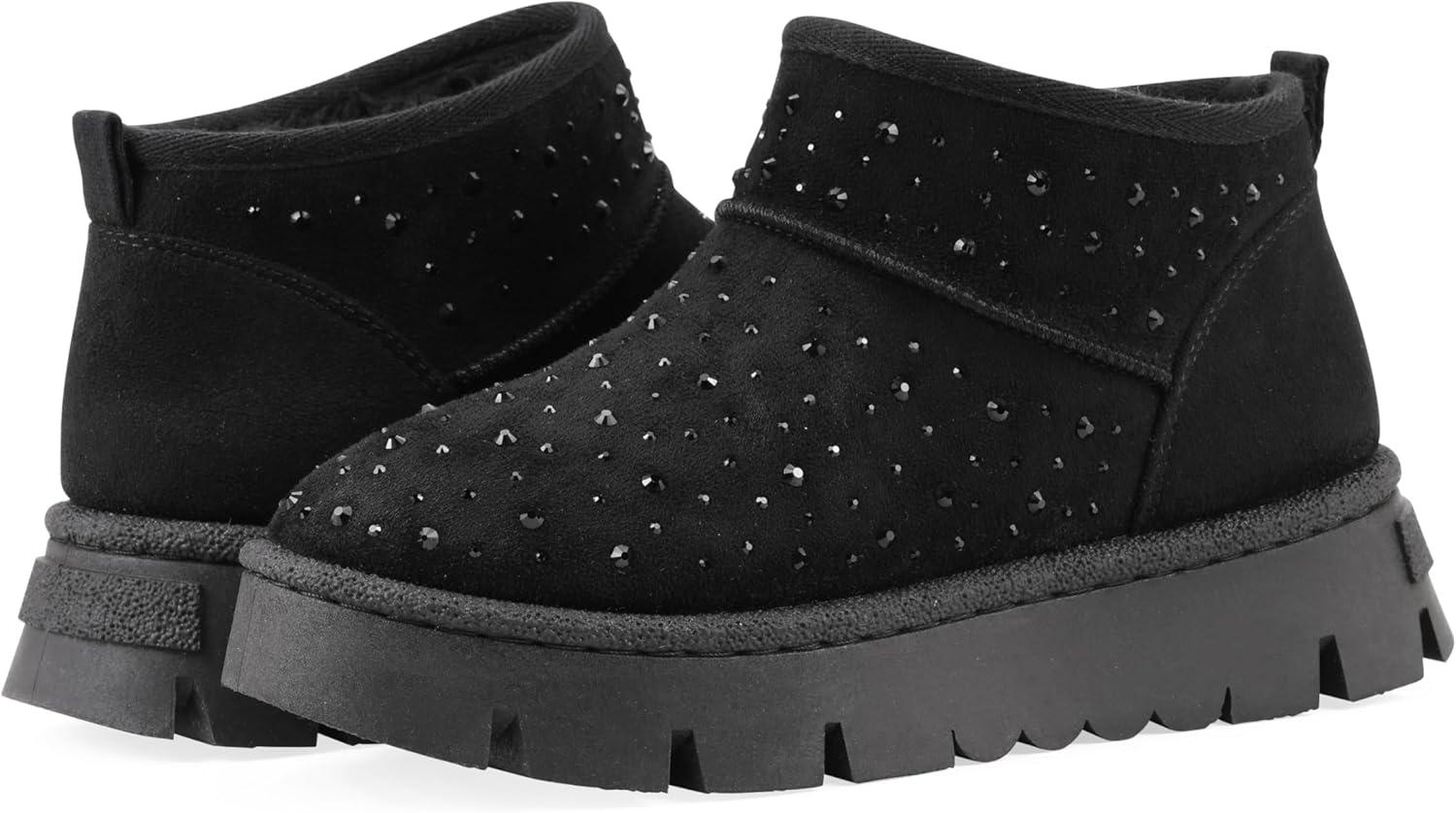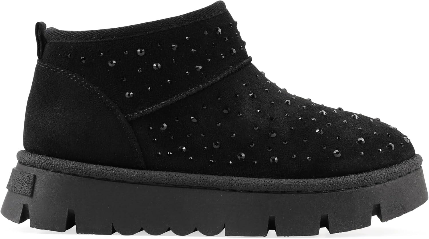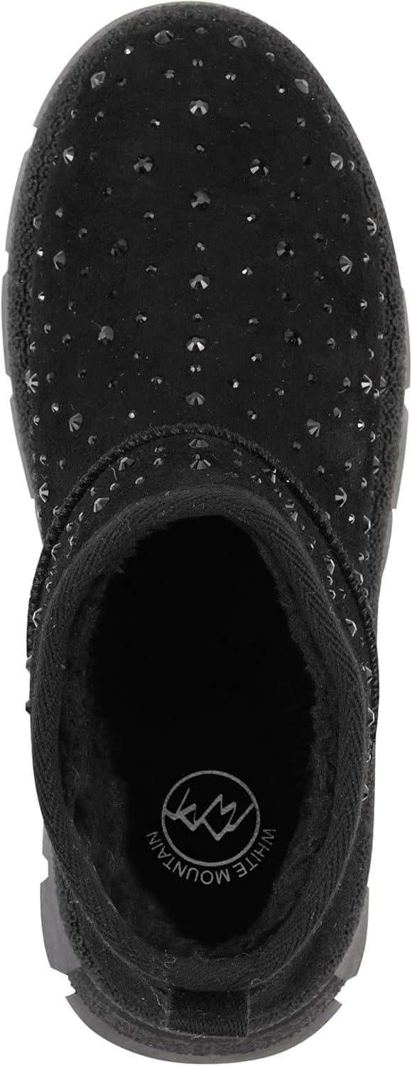 White Mountain Women’s Tomas Rhinestoned Lined Platform Ankle Bootie(Black Faux Suede)