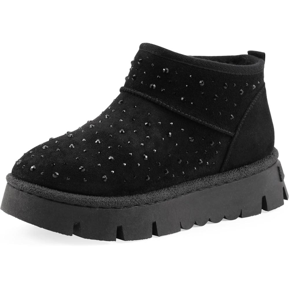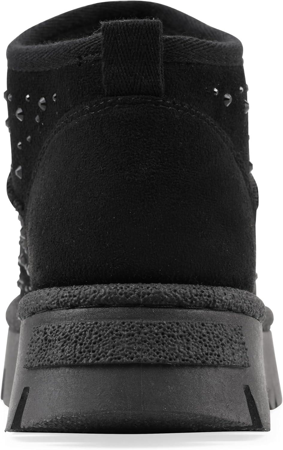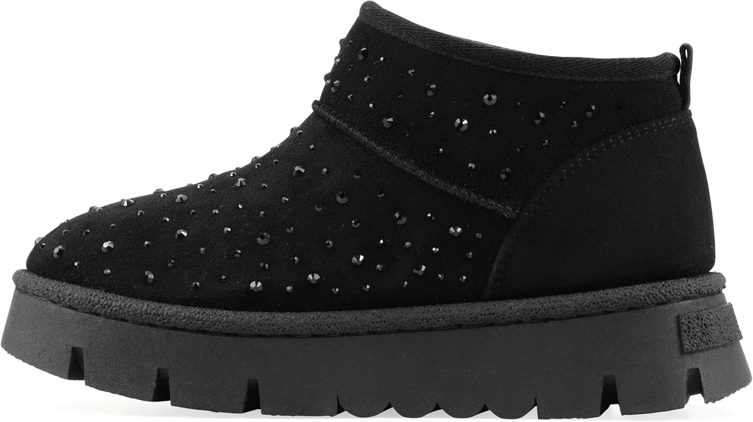 White Mountain Women’s Tomas Rhinestoned Lined Platform Ankle Bootie(Black Faux Suede)