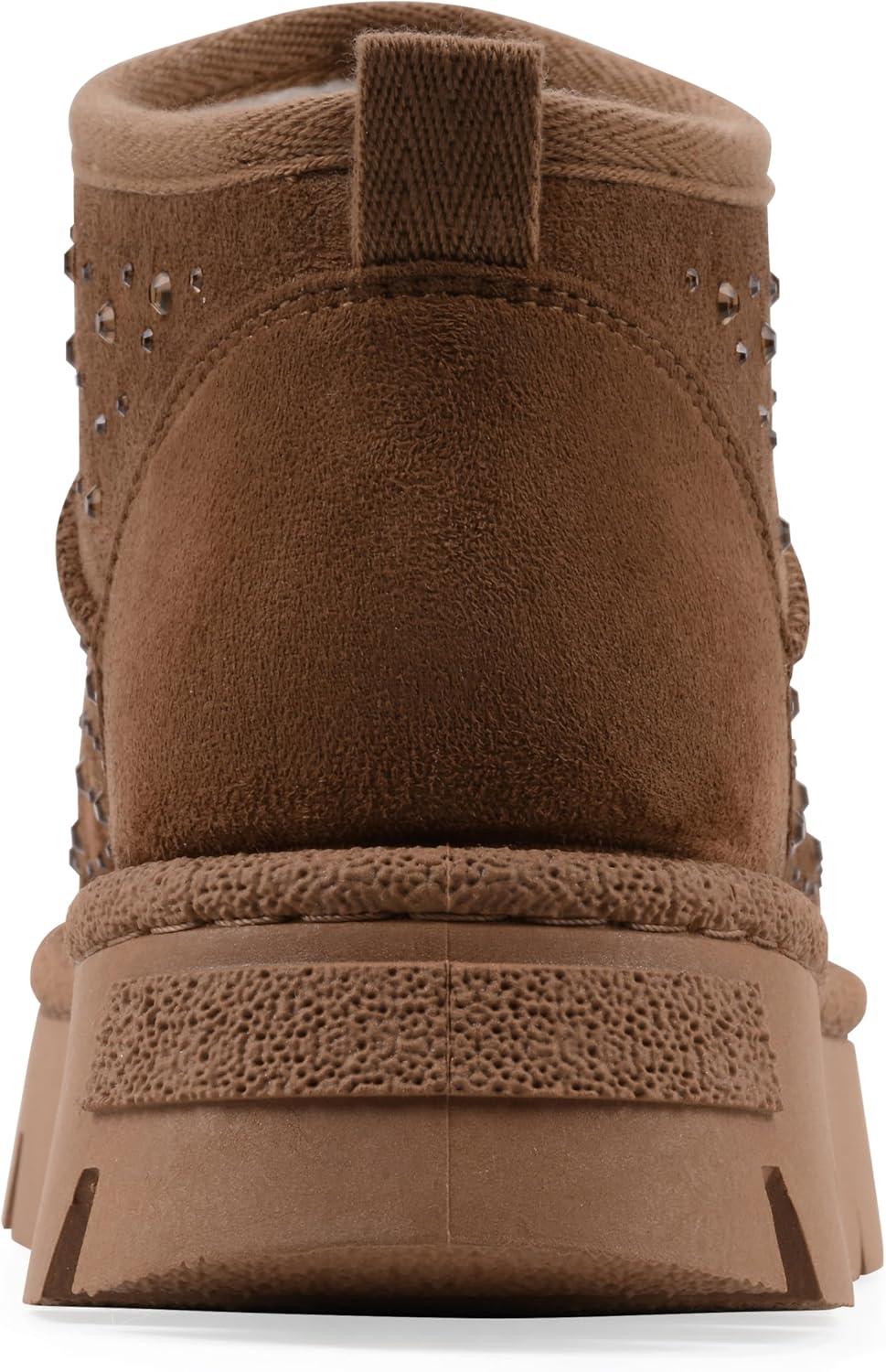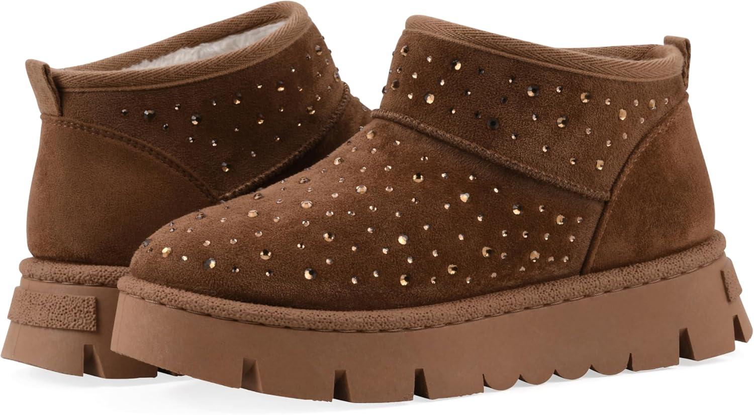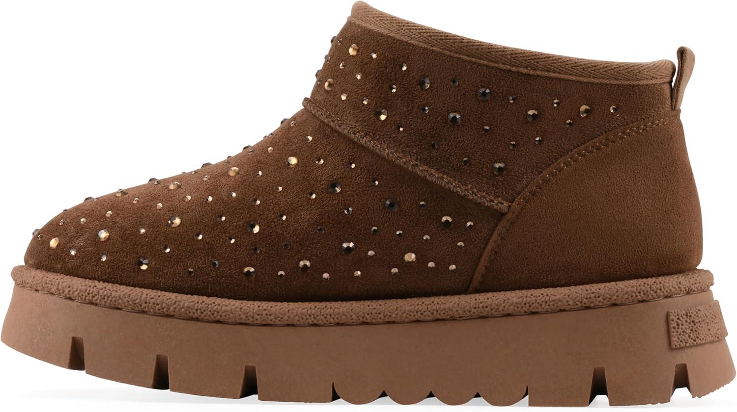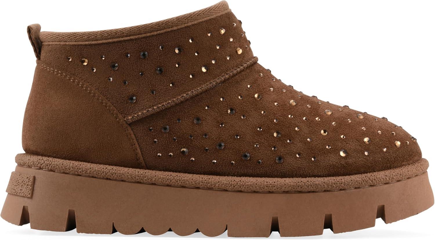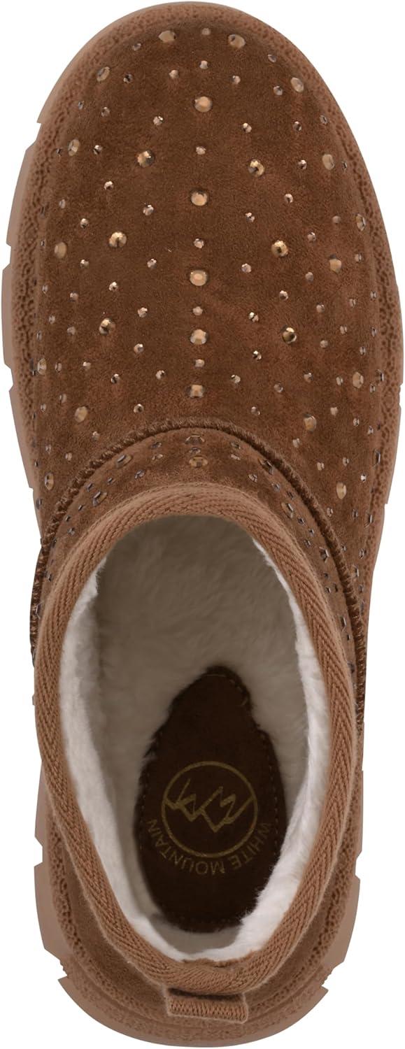 White Mountain Women’s Tomas Rhinestoned Lined Platform Ankle Bootie(Chestnut Faux Suede)